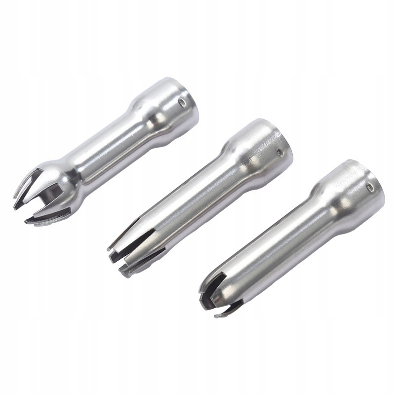 Датчик для взбитых сливок с тремя декоративными насадками. Кроме того, в упаковке вы также получите щеточку для чистки. Различные советы по декорированию помогут вам усовершенствовать свою работу.