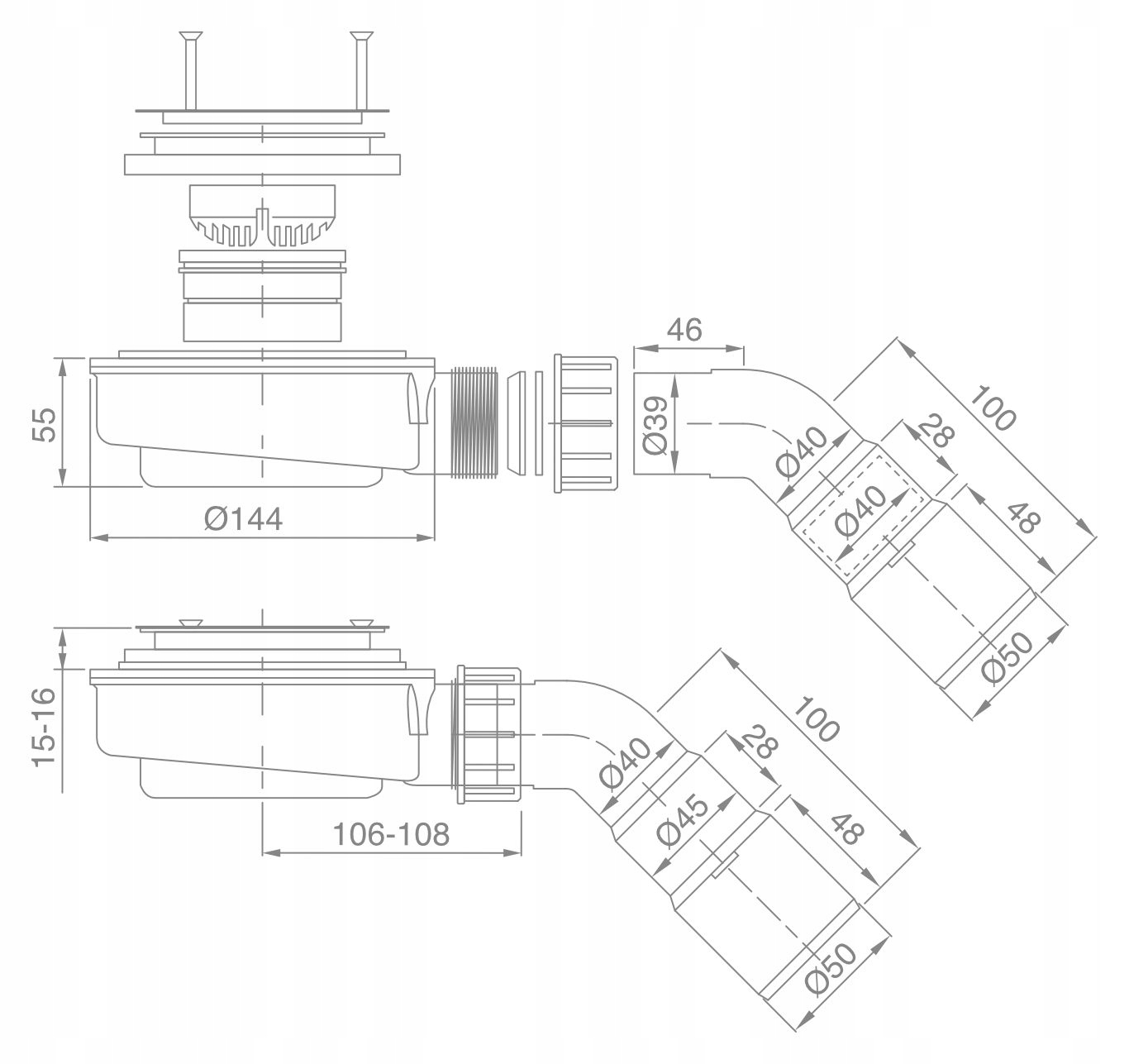 - предназначен для душевых поддонов с диаметром слива 90 мм.