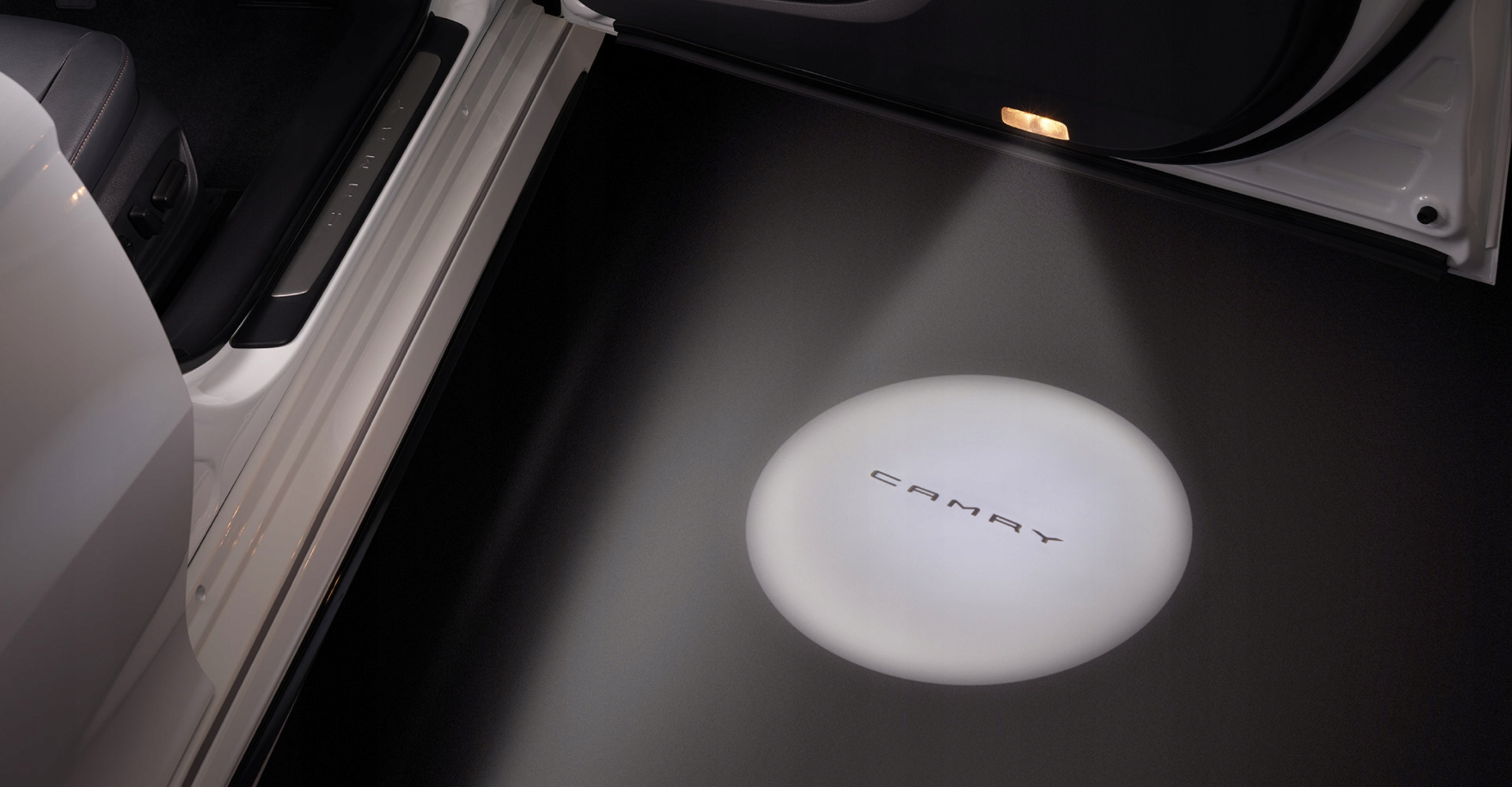 - Функция: При открытии двери светодиодный фонарь проецирует на землю светящийся логотип «CAMRY», улучшая видимость и создавая стильный эффект премиум-класса. в интерьере.