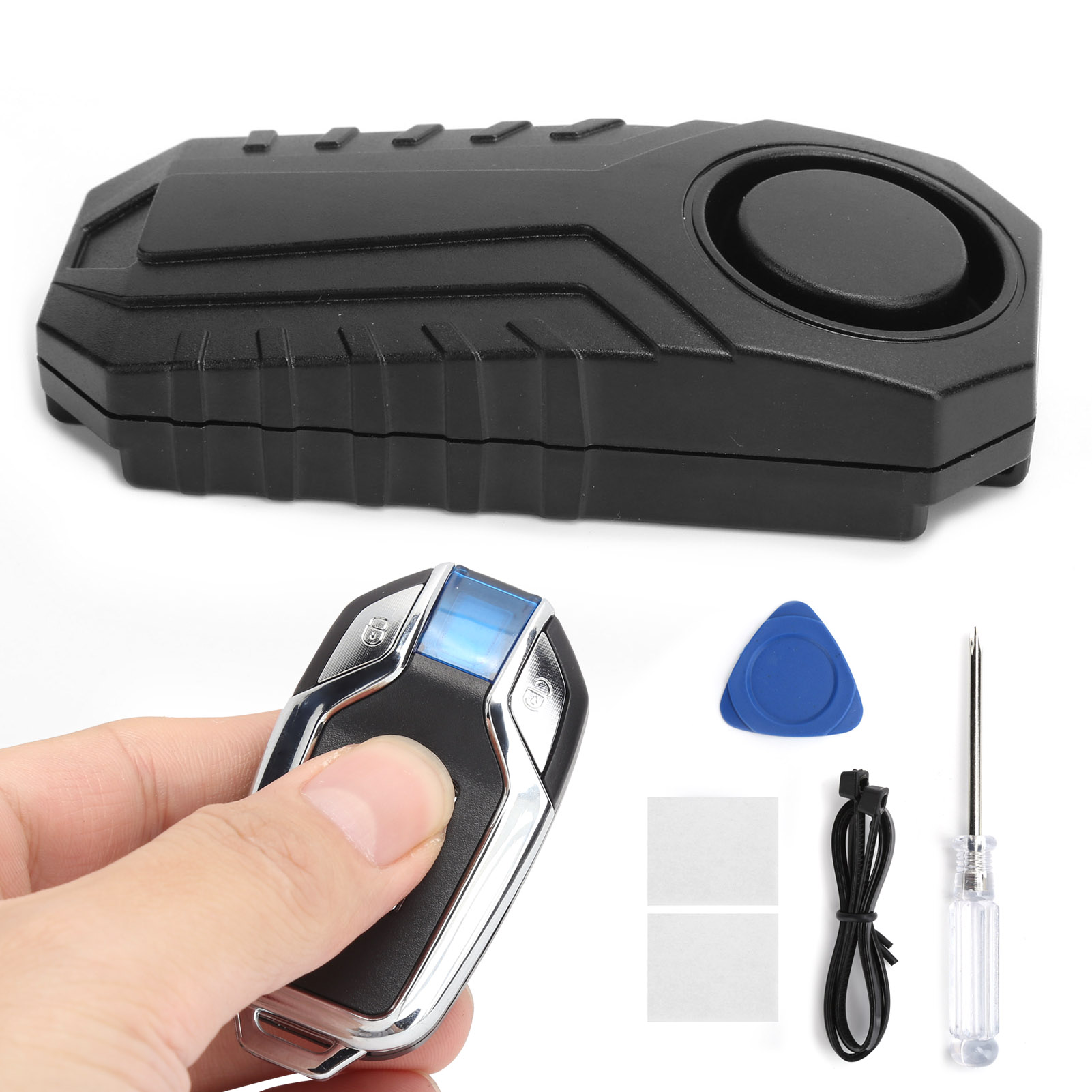 4. Простота установки, материал ПК, более прочное и долговечное водонепроницаемое кольцо. Класс водонепроницаемости IP55 позволяет использовать его на открытом воздухе. Противоугонная сигнализация на мотоцикл может крепиться путем приклеивания двустороннего скотча или монтажной ленты.