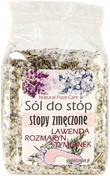 СОЛЬ ДЛЯ НОГ УСПОКАИВАЮЩАЯ «УСТАЛЫЕ НОГЫ» С ЛАВАНДОЙ, РОЗМАРИНОМ И ТИМЬЯНОМ 500г Каждый из нас хочет иметь ухоженные ноги, но мы не хотим использовать для этого вездесущую химию. Наш магазин предлагает Вам альтернативу – ванночки для ног на основе кристаллической соли и трав высочайшего качества. Содержащиеся в соли микроэлементы питают, насыщают кислородом и разглаживают кожу. Соль прекрасно смягчает воду и эпидермис. Он расширяет поры кожи, благодаря чему активные вещества, содержащиеся в травах, могут быстрее проникнуть и начать действовать. Природная кристаллическая соль добывается из природных месторождений каменной соли, не содержит химических загрязнений, не является продуктом нефтепереработки, не имеет химических добавок и не отбеливается. Это богатый источник микроэлементов, необходимых для правильного, здорового функционирования организма. Биоэлементы, входящие в состав природной кристаллической соли, образуют комплексы, которые легко усваиваются организмом. Они контролируют метаболическую деятельность, т. е. обмен веществ. Этими элементами являются: магний, калий, цинк, железо, кобальт, медь, марганец, молибден, селен. Лаванда — широко известное растение с прекрасным ароматом, часто используемое в ароматерапии и косметике.
