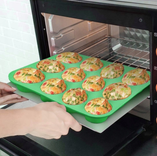 Высококачественная силиконовая форма для выпечки кексов и кексов, а также для приготовления фирменных блюд на вашей кухне, таких как различные виды мини-запеканок или запеченных яиц.