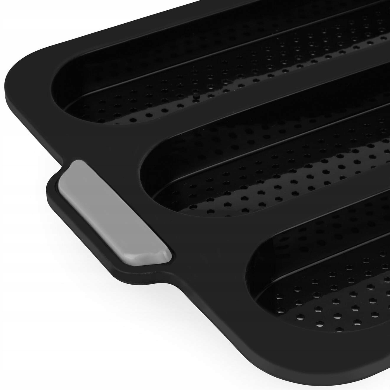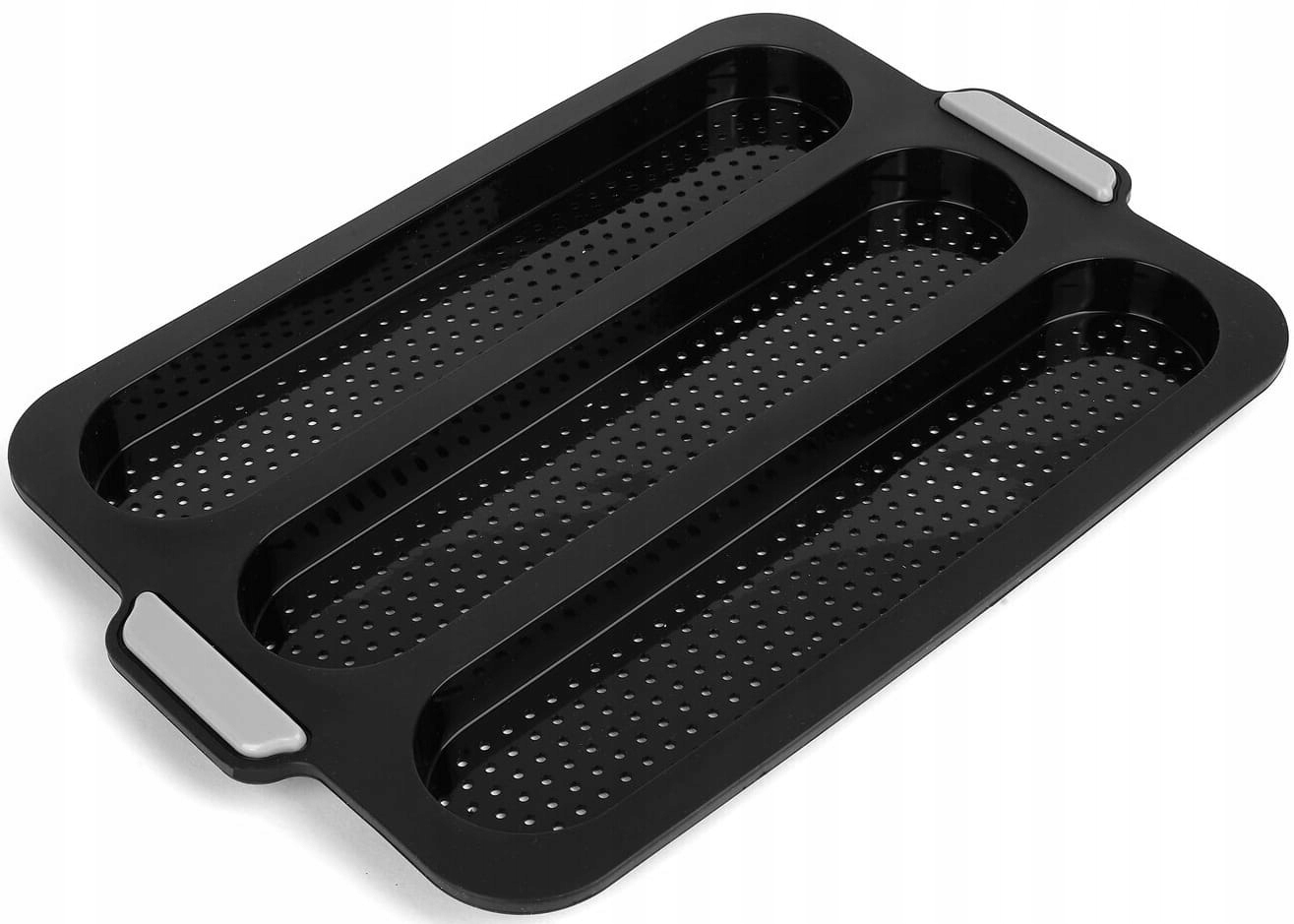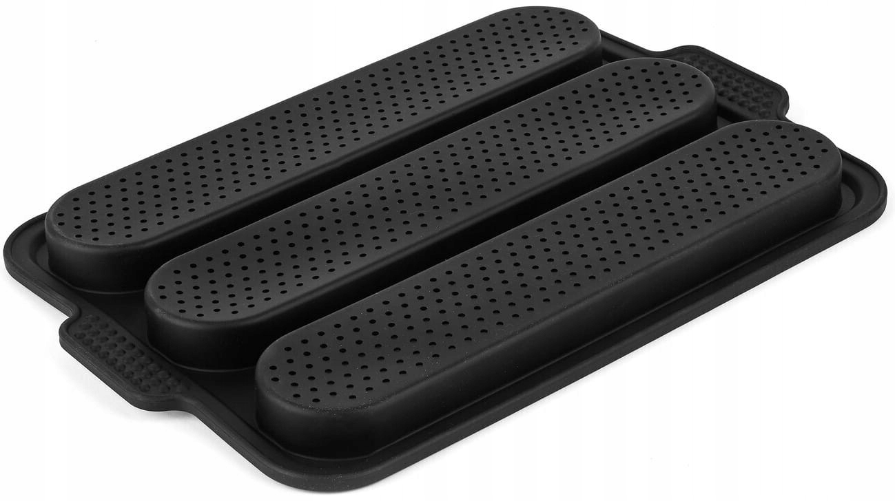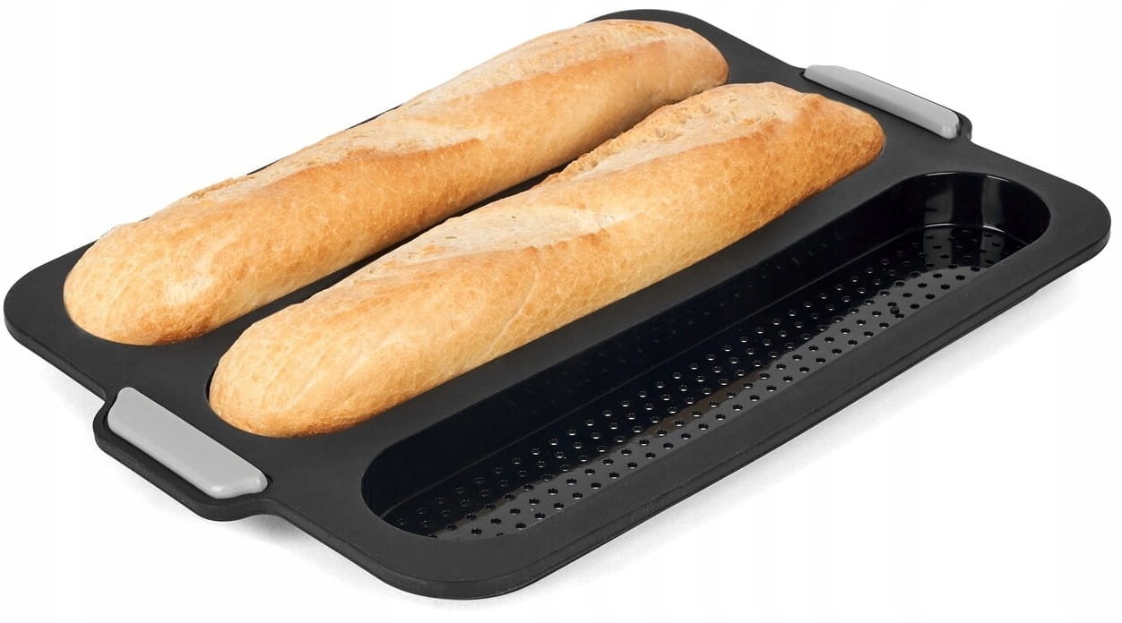 Идеально подходит для приготовления домашней выпечки идеальной формы — силиконовая форма на 3 багета от SILICO. С нашей формой ваша выпечка будет необыкновенно хрустящей и хорошо пропеченной. Форма имеет специальную перфорацию, которая поддерживает правильную циркуляцию воздуха и температуру во время выпечки. Удобные ручки облегчают безопасное извлечение выпечки из духовки.