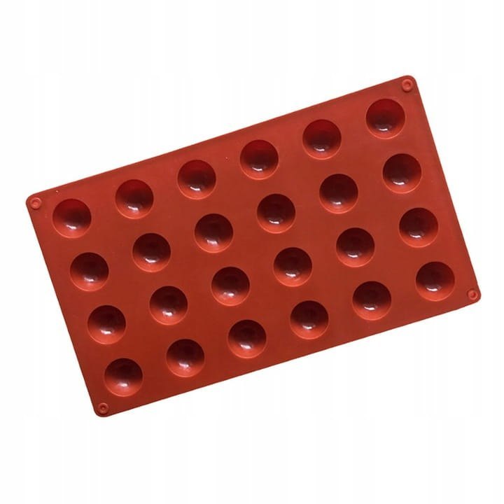 Маленькая силиконовая форма-полусфера имеет 24 поля диаметром 2,8 см, выполненные в форме полусфер, которые облегчают получение желаемой формы полукруга.