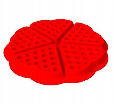 Круглая форма для выпечки вафель имеет 5 полей в форме сердечек. Он подходит не только для выпечки, но и для приготовления замороженных десертов, желе или шоколада. Удалить их из коврика не составит проблемы - благодаря свойствам силикона, который предотвращает их прилипание к поверхности формы.