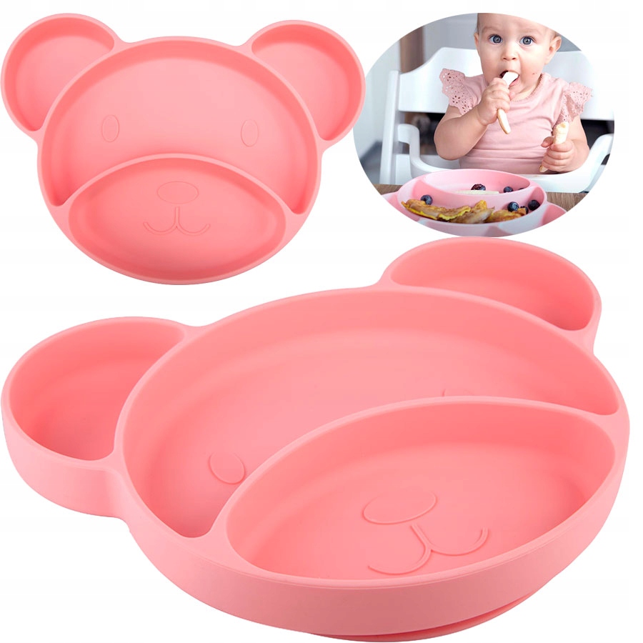 Canpol Babies - Силиконовая тарелка для кормления ребенка с трехчастным делением на присоске BEAR PINK
