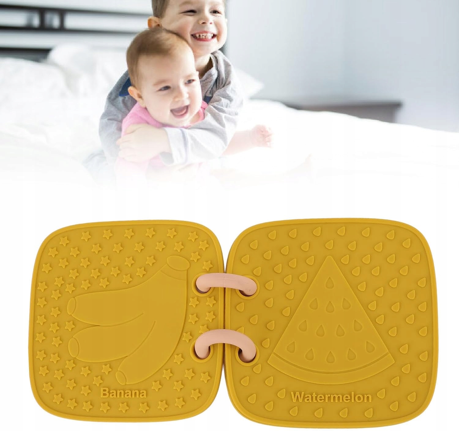 Двусторонний дизайн: эта силиконовая игрушка-книжка с четкими узорами и буквами на обеих сторонах способствует раннему распознаванию и обучению, помогая детям узнавать фрукты и многое другое, что делает ее практичным реквизитом.