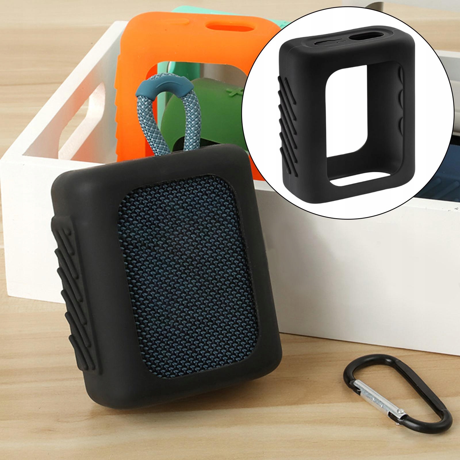 Силиконовая крышка громкоговорителей с карабинером, съемный, мягкий, черный