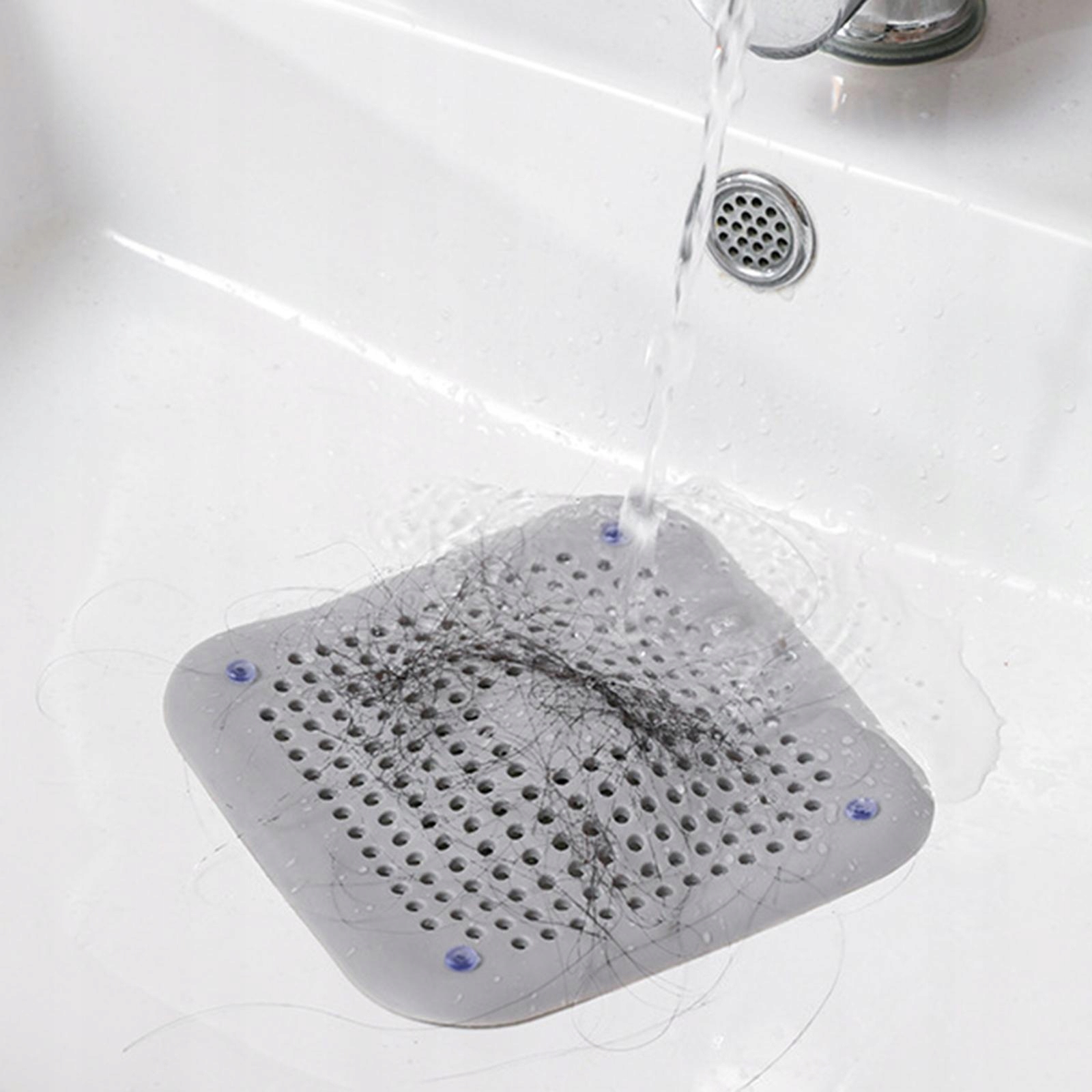 ВСАСЫВАНИЕ: Уловитель волос с присоской. Сильное всасывание позволяет сливному фильтру для волос хорошо прилегать к раковине или полу душа.