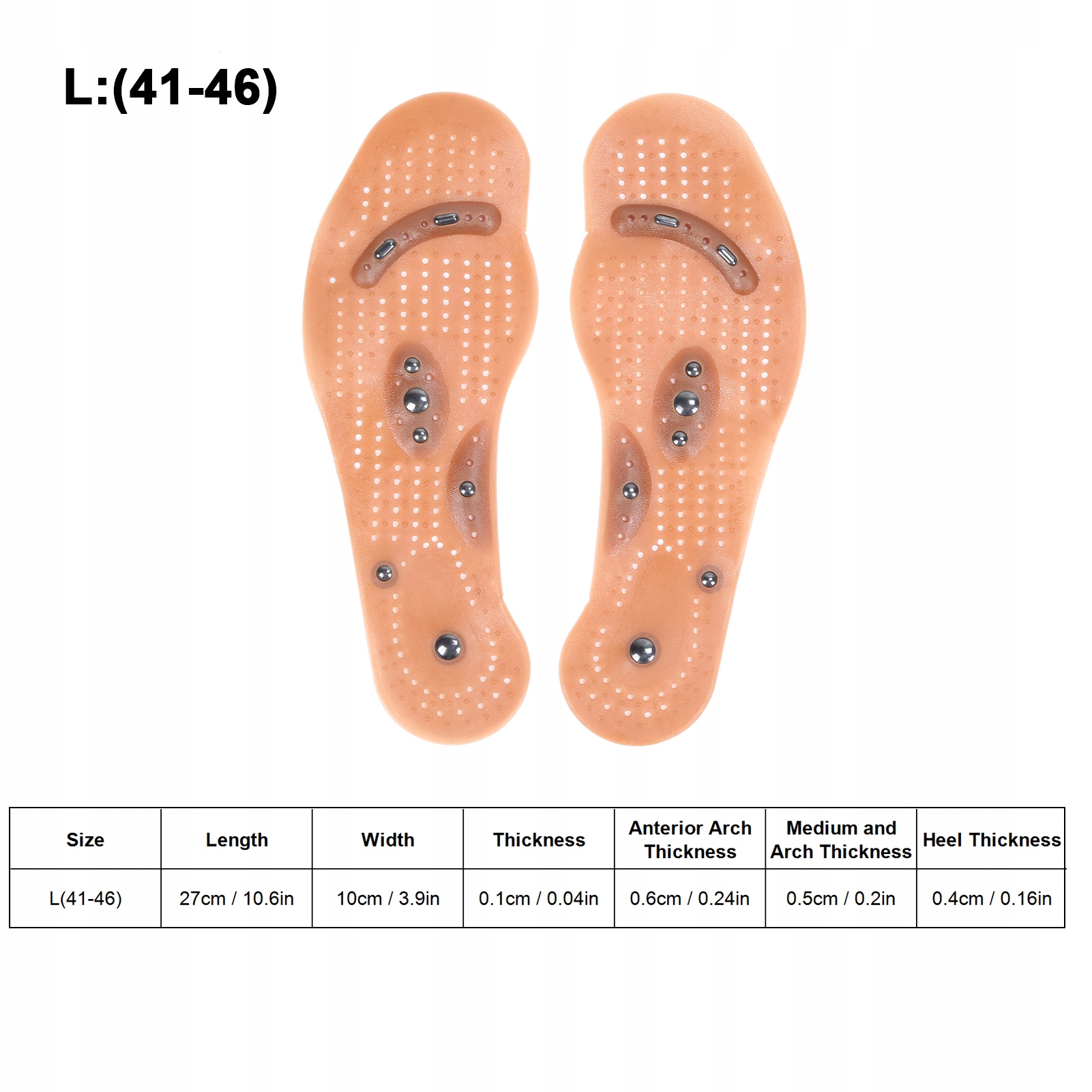 - l (41-46) 27 см / 10,6 дюйма 10 см / 3,9 дюйма 0,1 см / 0,04 дюйма 0,6 см / 0,24 дюйма 0,5 см / 0,2 дюйма 0,4 см / 0,16 дюйма / 0,16 Кала