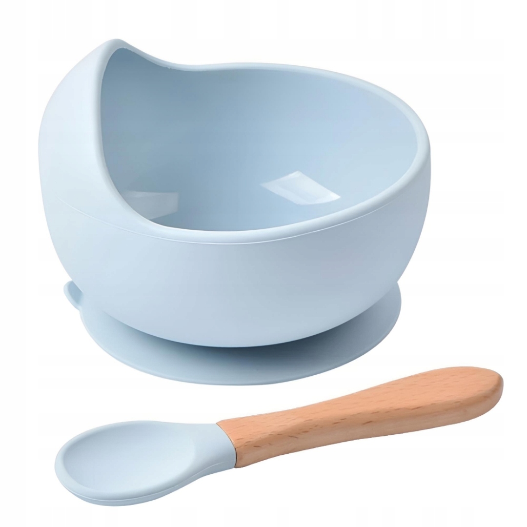 СИЛІКОНОВА МИСКА З НАБОРОМ ПРИСОСКА ТА ЛОЖКА - СИНЯ