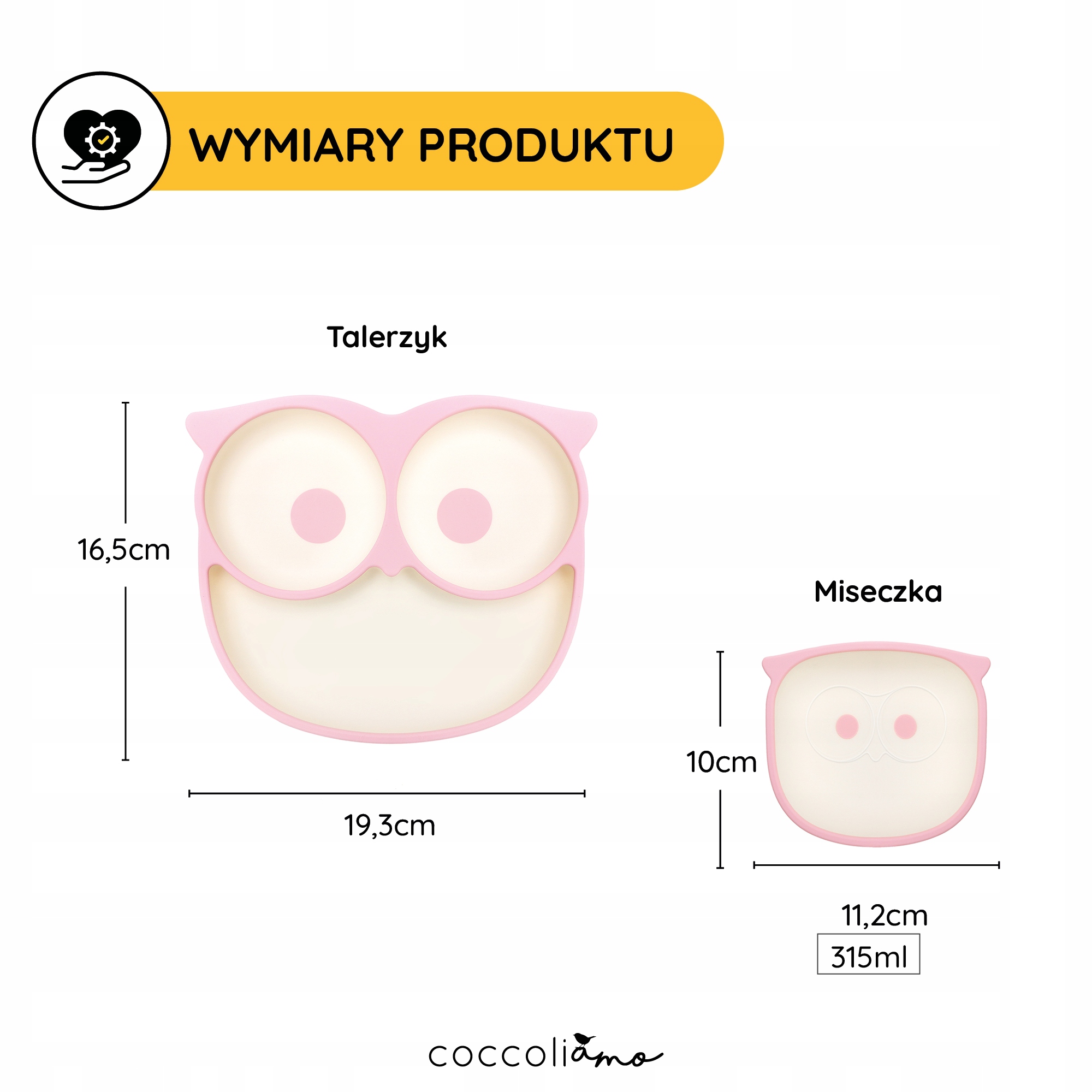 Набор: силиконовая тарелка на присоске OWL с отделениями + миска, пудрово-розовый