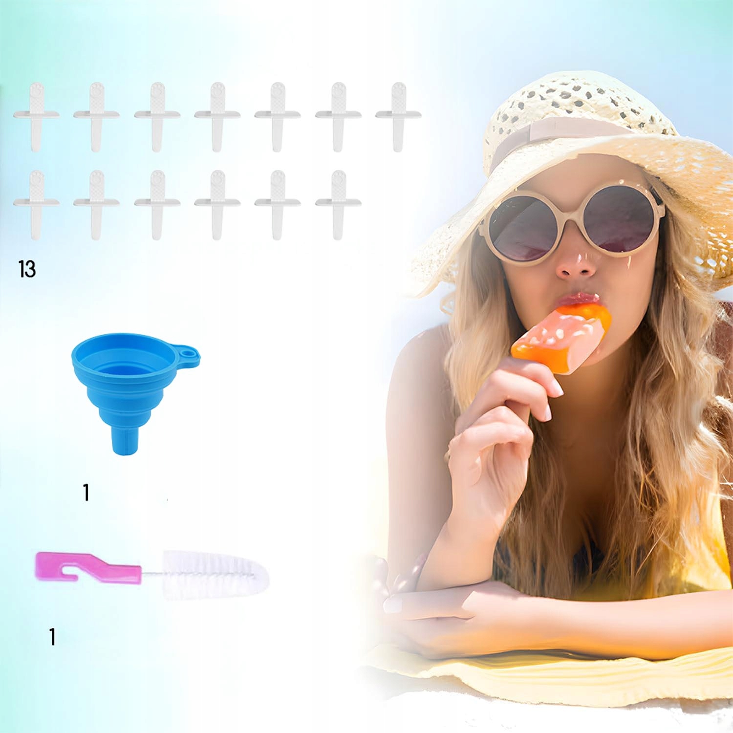 🍦 Простота в использовании: Поскольку формы для водяного льда изготовлены из антипригарного гибкого силикона, вы можете легко высвободить лед из ручки. Во время приготовления под них можно подложить жесткий поднос, чтобы лед не рассыпался при транспортировке. Достав из холодильника, можно замочить поверхность формочек в теплой или комнатной воде на 2-3 минуты. Так вам будет легче удалить лед с ручки.