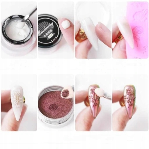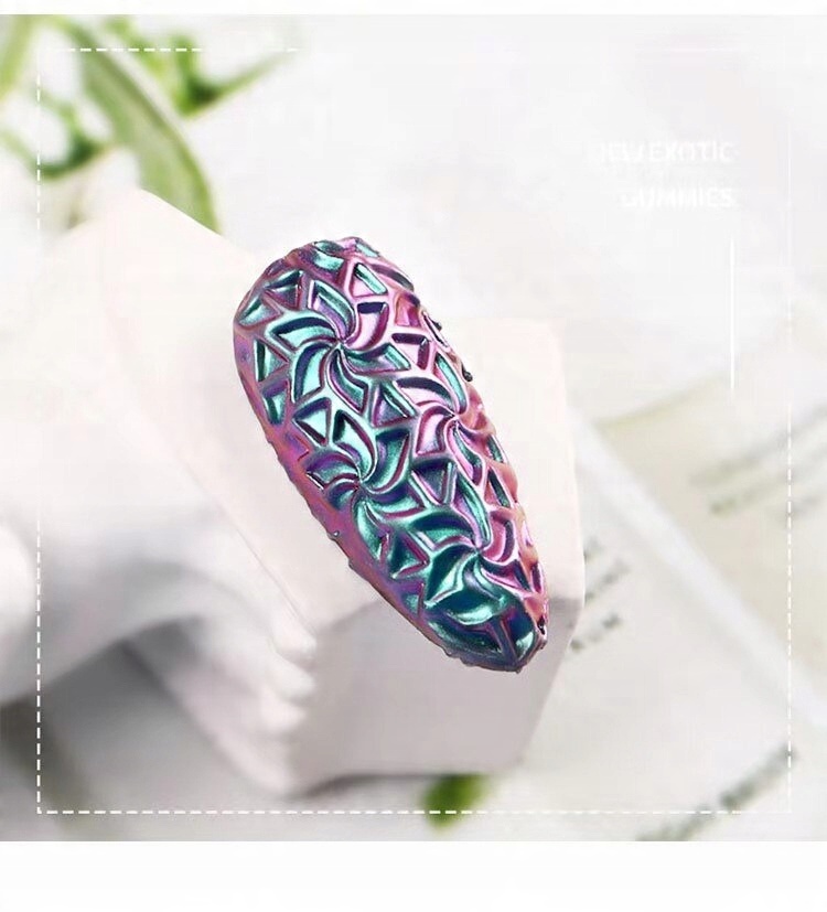Плитка с красивыми узорами, которая легко и быстро позволит вам создавать удивительные украшения на ваших ногтях с помощью только акрилики, любимого пыльцы, как: хром, единорог, стекло, хамелеон.