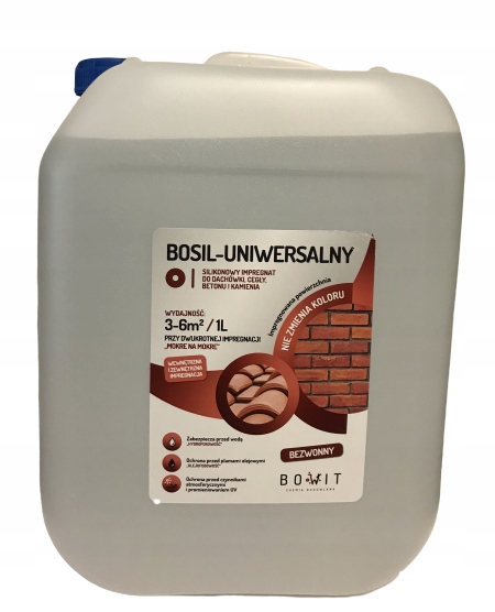 Bosil Universal - силиконовая пропитка, предназначенная для гидрофобизации кирпича, природного камня, песчаника, известняка, цементно-известковых штукатурок, изделий из бетона. , черепица ,гранит. (защита основания от вредного воздействия воды путем отталкивания ее частиц).