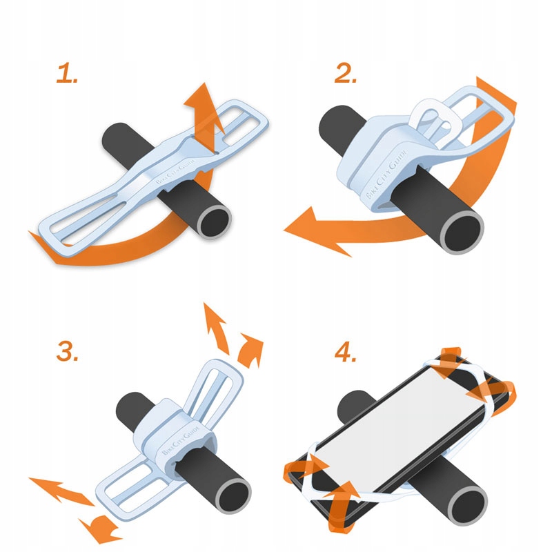 Ручка может быть прикреплена к любому велосипедному рулевому колесу и многим другим. Силикон адаптируется к любому типу рулевого колеса. Установка и разборка очень просты и происходит в нескольких простых движениях. Без использования каких-либо инструментов, липучки или защелкивания