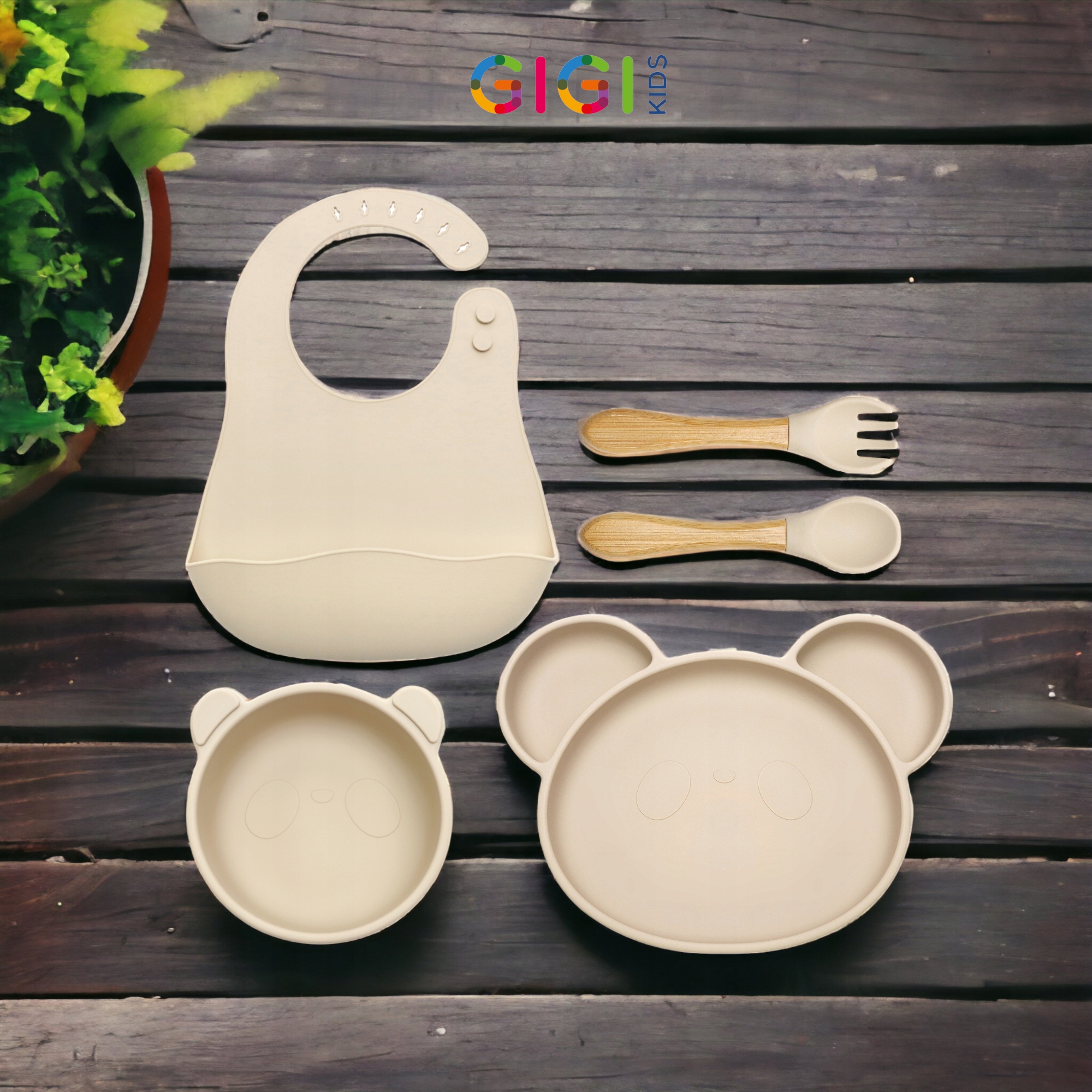 Набор силиконовой посуды для детей, 5 предметов, цвет белый экрю: