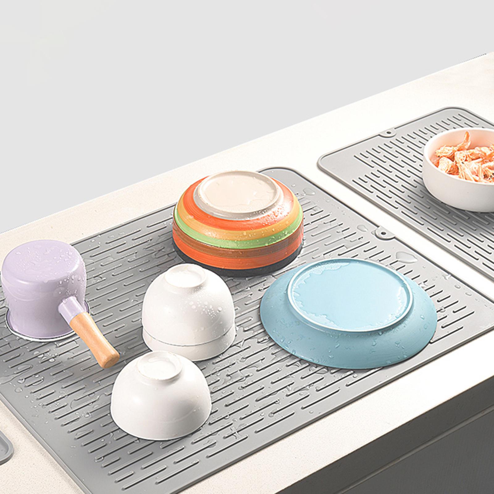 Пищевой силикон: изготовлен из мягкой пищи, силиконовой, экологически чистым, долговечным и безопасным для еды. Вы можете мыть в посудомоечной машине и быстро высохнуть. Dringing & Sind Mat может сложить его для хранения и не в форме. Высыхание быстро: коврики на кухне имеют дренажную конструкцию, вы можете сохранить залог или овощи в сухости, а вода не переполняется на столешницу, а затем коврик для сушки для блюда может помочь кухонному столешнику всегда сохранять чистоту и заказ. Столы перед горячими кастрюлями. Хорошая идея для горячей/охлаждающей подставки.
