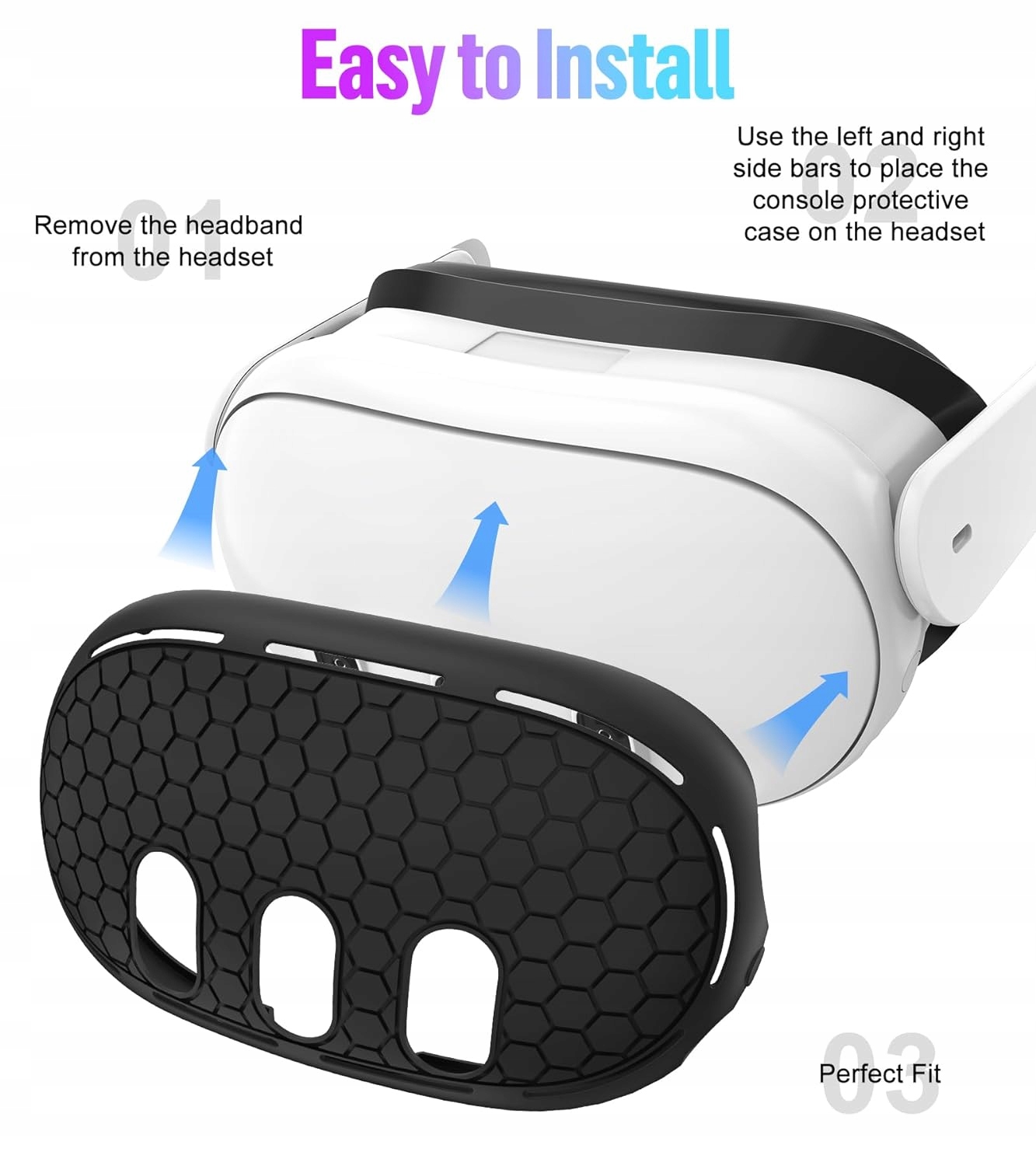 【Простота установки】 Защитный чехол для гарнитуры Oculus Quest 3 легко собрать. Этот силиконовый защитный чехол не только придает устройству приятный и стильный вид, но и обеспечивает надежную защиту вашего устройства.