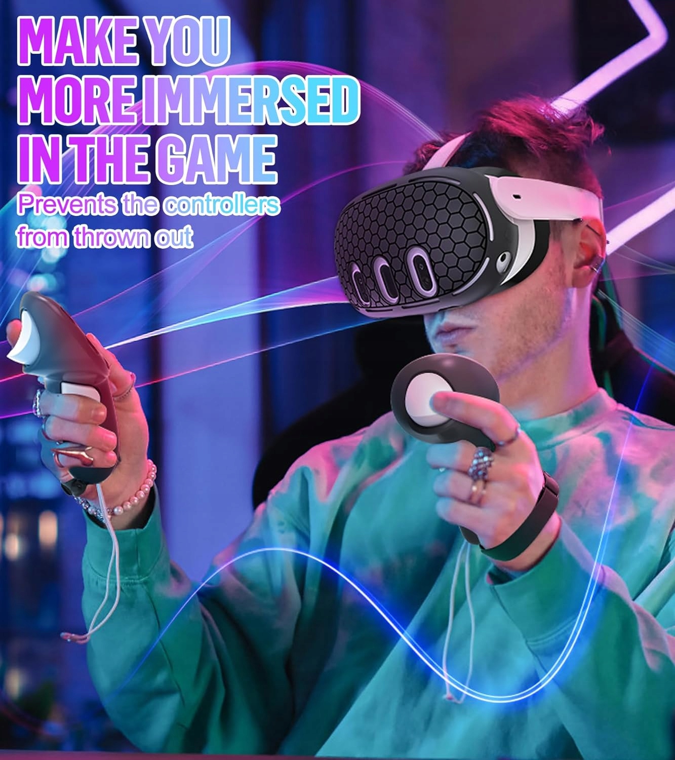 【Отличная защита гарнитуры】Силиконовый чехол обеспечивает дополнительный уровень защиты вашей гарнитуры Oculus Quest 3, защищает переднюю гарнитуру от падений и царапин, случайных падений и ударов. Отличные аксессуары для Meta Quest 3 для защиты вашего дорогого устройства