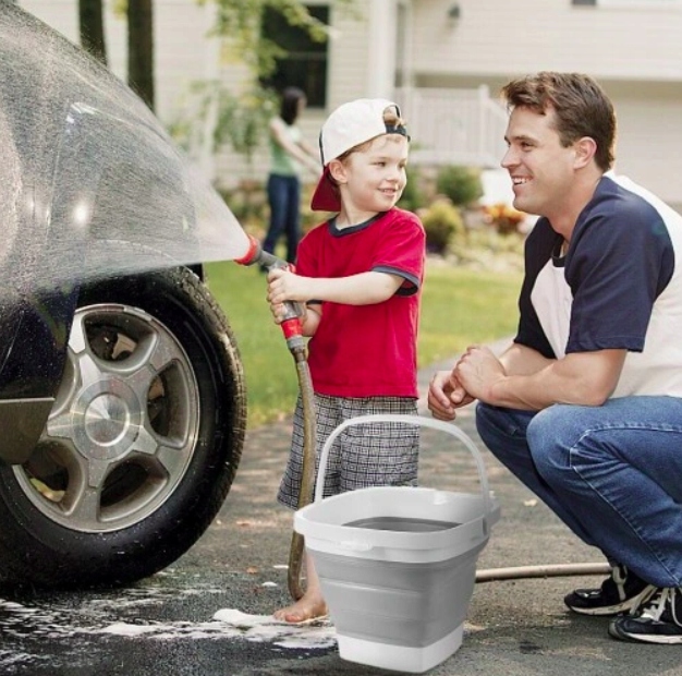 Устойчивое 5-литровое ведро можно сложить за несколько секунд до компактного размера, что идеально подходит для хранения или путешествия. Его можно использовать как ведро или миску. Продуманная конструкция состоит из края и дна из прочного и жесткого материала, а стенки из прочного силикона.