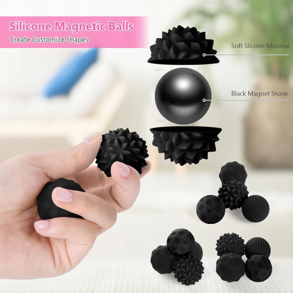 Благодаря силиконовому покрытию шарики практически бесшумны, что делает их подходящими для офиса, школы или дома. Они нетоксичны, долговечны, легко чистятся и благодаря магнитной адсорбции могут комбинироваться в различные формы, создавая дополнительные возможности для развлечения.