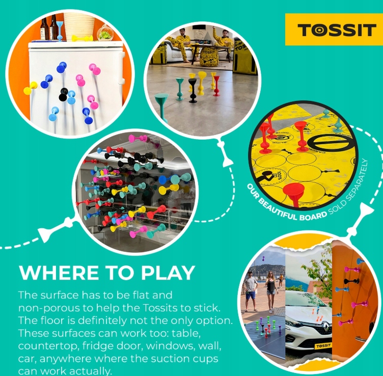 Tospit будет работать везде: на каждой плоской поверхности, как горизонтальной, так и вертикальной. Идеальная игра для мероприятий, встреч и семейного времени! h2> - Оригинальный подход, необходимый для развлечения с друзьями, семьей, на вечеринке или даже в офисе. Офис, если ваш босс прохладный ✌ Смесь Bocci и DARTS, вы можете играть в комнате или на открытом воздухе (в отличие от пластика)