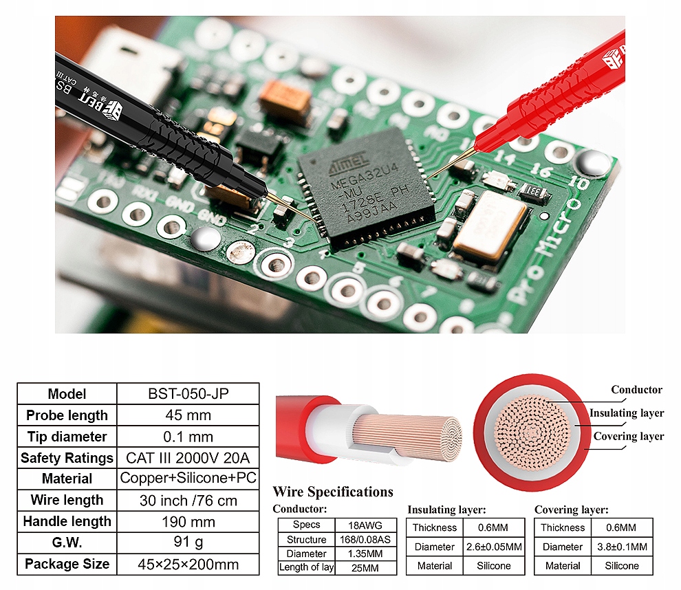 СИЛІКОНОВІ КАБЕЛІ МЕТРІВ 20A BST-050-JP ДЛЯ ШТИРІВ МУЛЬТИМЕТРІВ