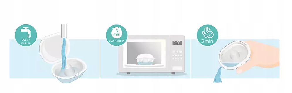 Очищайте накладки на соски перед каждым использованием. Это займет менее 10 минут. Поместите крышки в кипяток на пять минут или воспользуйтесь специальным чехлом. Поместите в него хорошо промытые оболочки и залейте 25 мл воды. Затем поместите корпус в микроволновую печь и включите мощность 750-1000 Вт на 3 минуты. Подождите пять минут, чтобы они остыли. Вылейте воду. Оболочки готовы к использованию. Стоит использовать этот удобный чехол для чистки чехлов в поездках. Конечно, он также используется для их хранения.