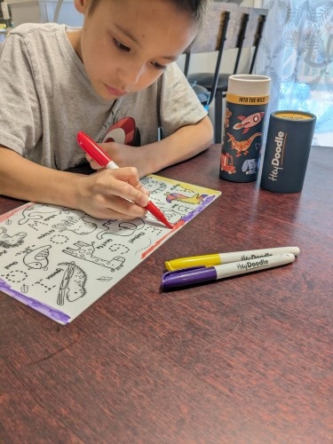 Австралийская компания HeyDoodle разработала упаковку так, чтобы она была красивой и практичной, поэтому коврики идеальны в качестве подарка, а затем для развлечения дома, в путешествии, в машине, у бабушки и тети, а после игры можно положить фломастеры и коврик обратно в эстетичную упаковку.