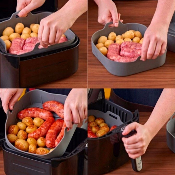 Силиконовая выпечка в воздухе -фаррид -это практическое и надежное добавление , которое обеспечивает чистый на воздушном картофеле, что мешает минимизировать накопление жира. Если вы хотите наслаждаться чистыми блюдами и вкусными, здоровыми блюдами, эта силиконовая форма для вас! 🍔🍗