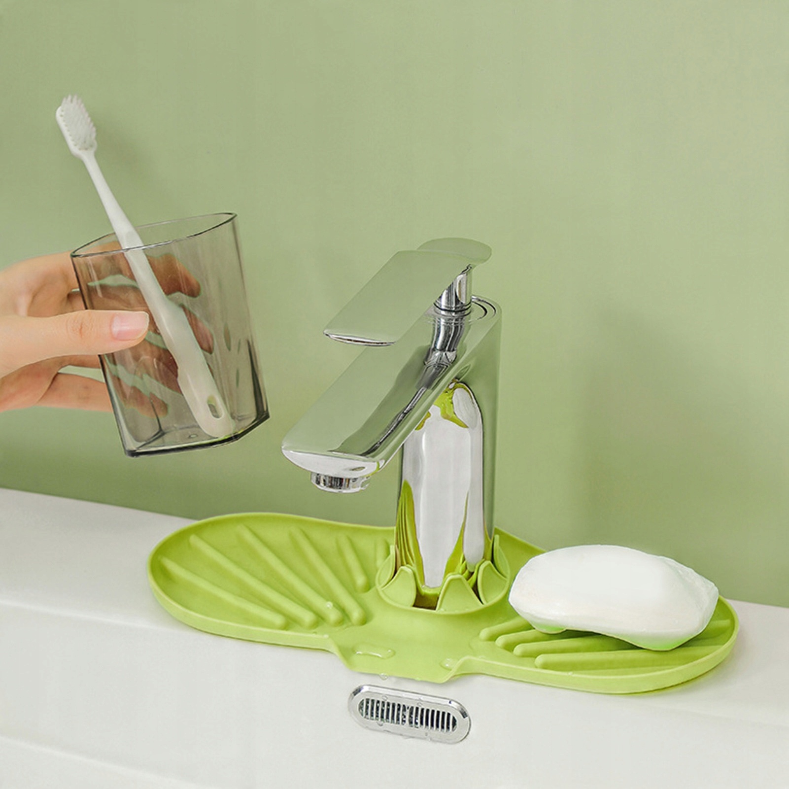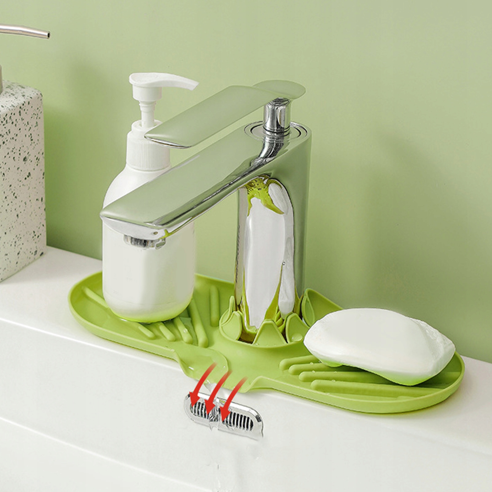 3. [Проектирование анти -скольжения] Коврик для кухонного крана имеет устойчивую к скольжению структуру стабильности и безопасности, обеспечивая надежное хранение кухни или азиенических предметов.