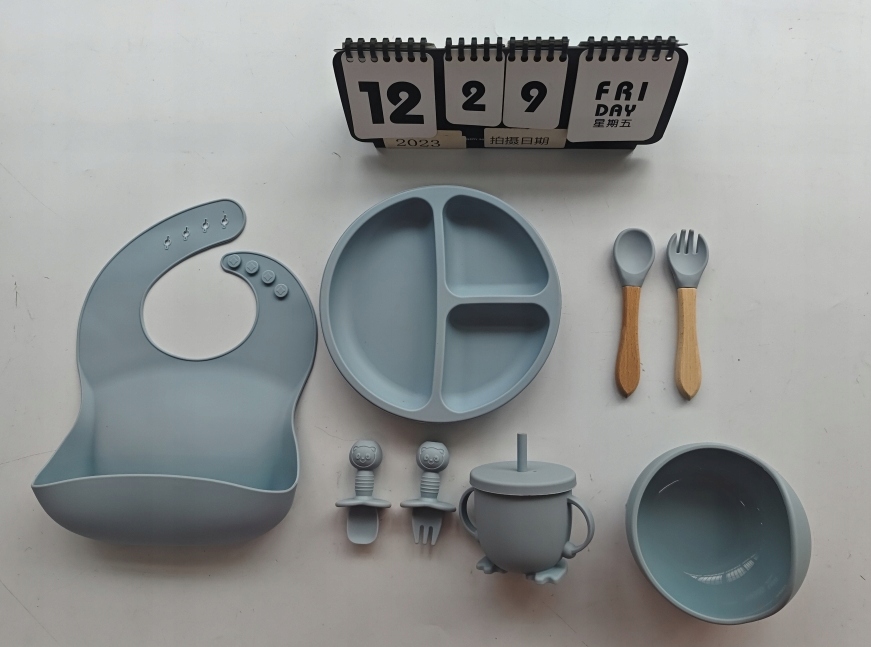 Силиконовый набор для детей детей 8 элементов - серо -синий