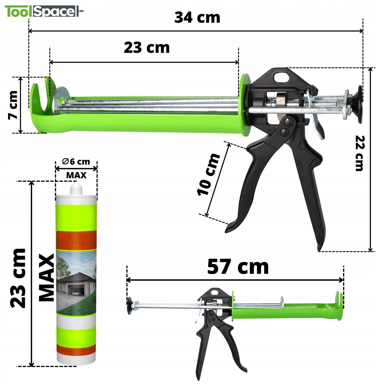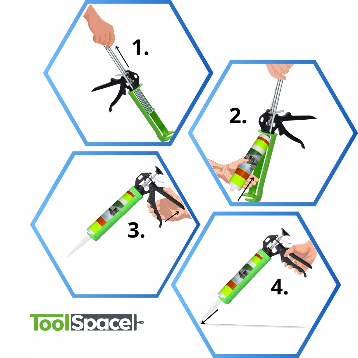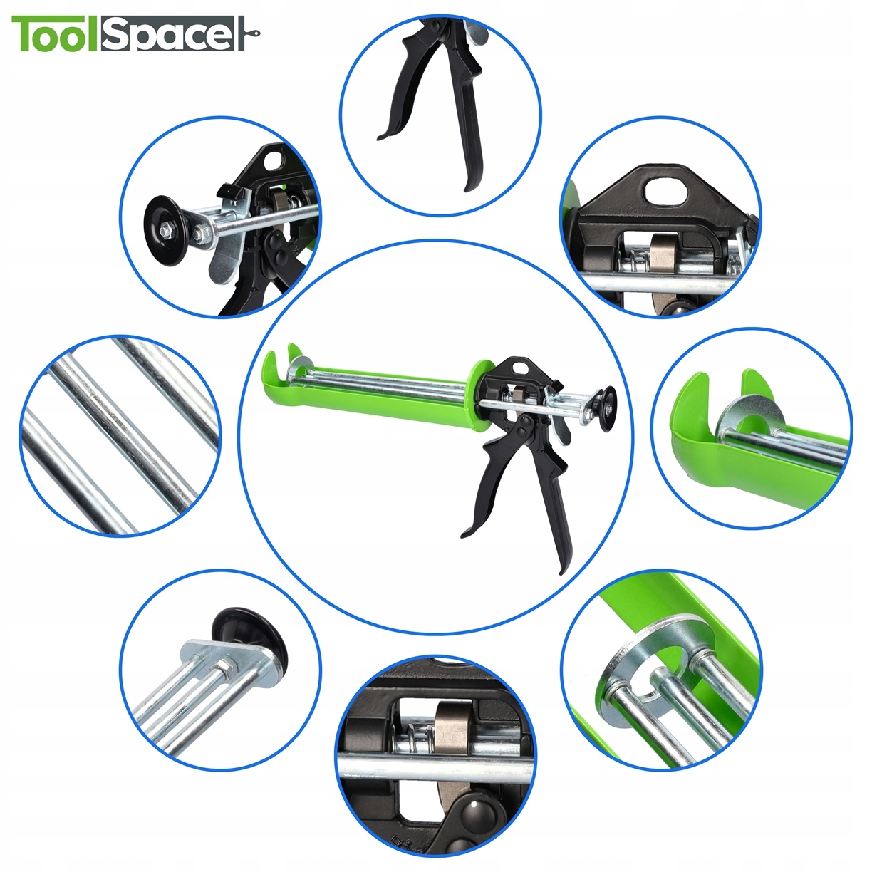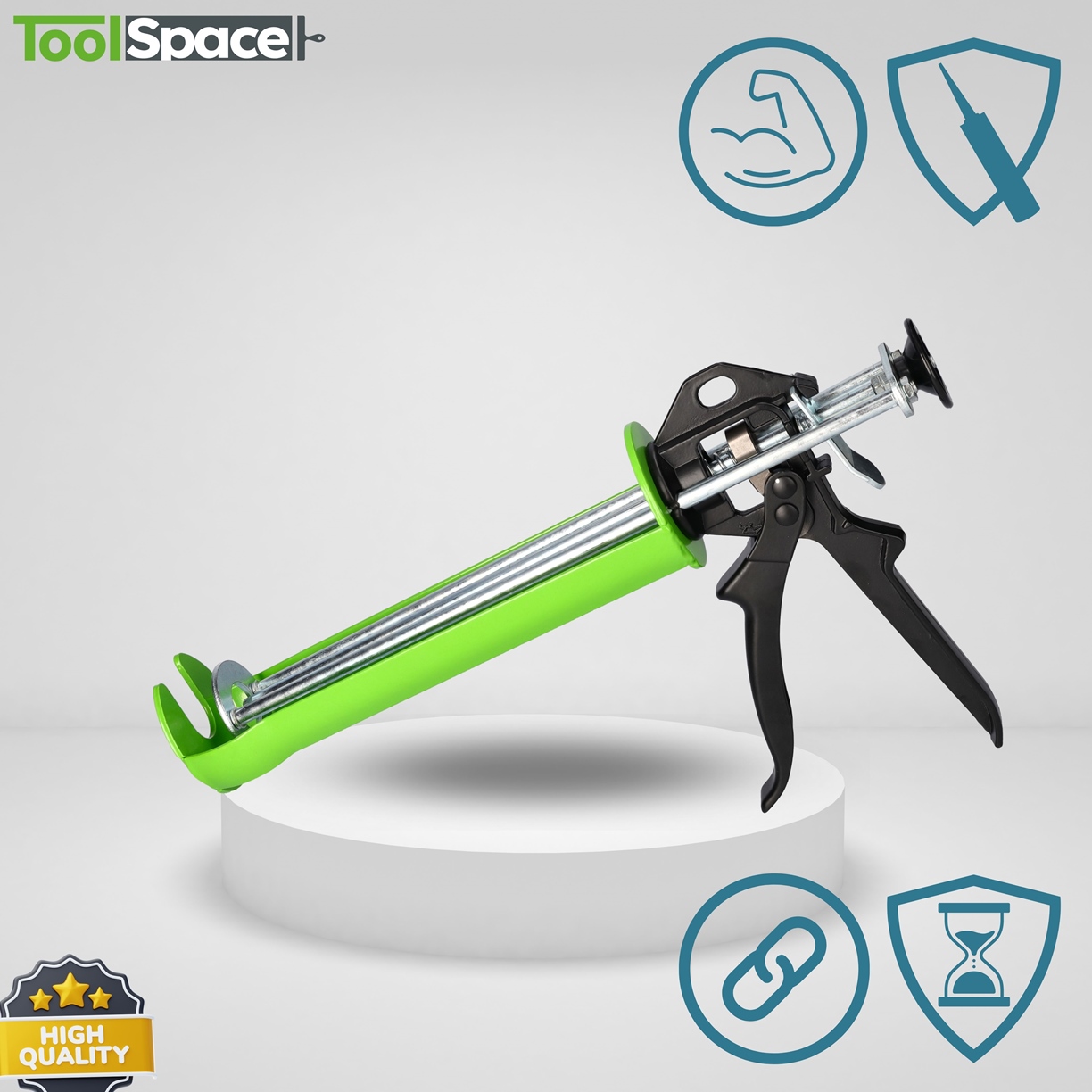 Надежный пистолет ToolSpace для точного нанесения силиконов, клеев и других густых веществ. Сделанный из сочетания прочной стали и легкого алюминия, он прочный и простой в использовании.