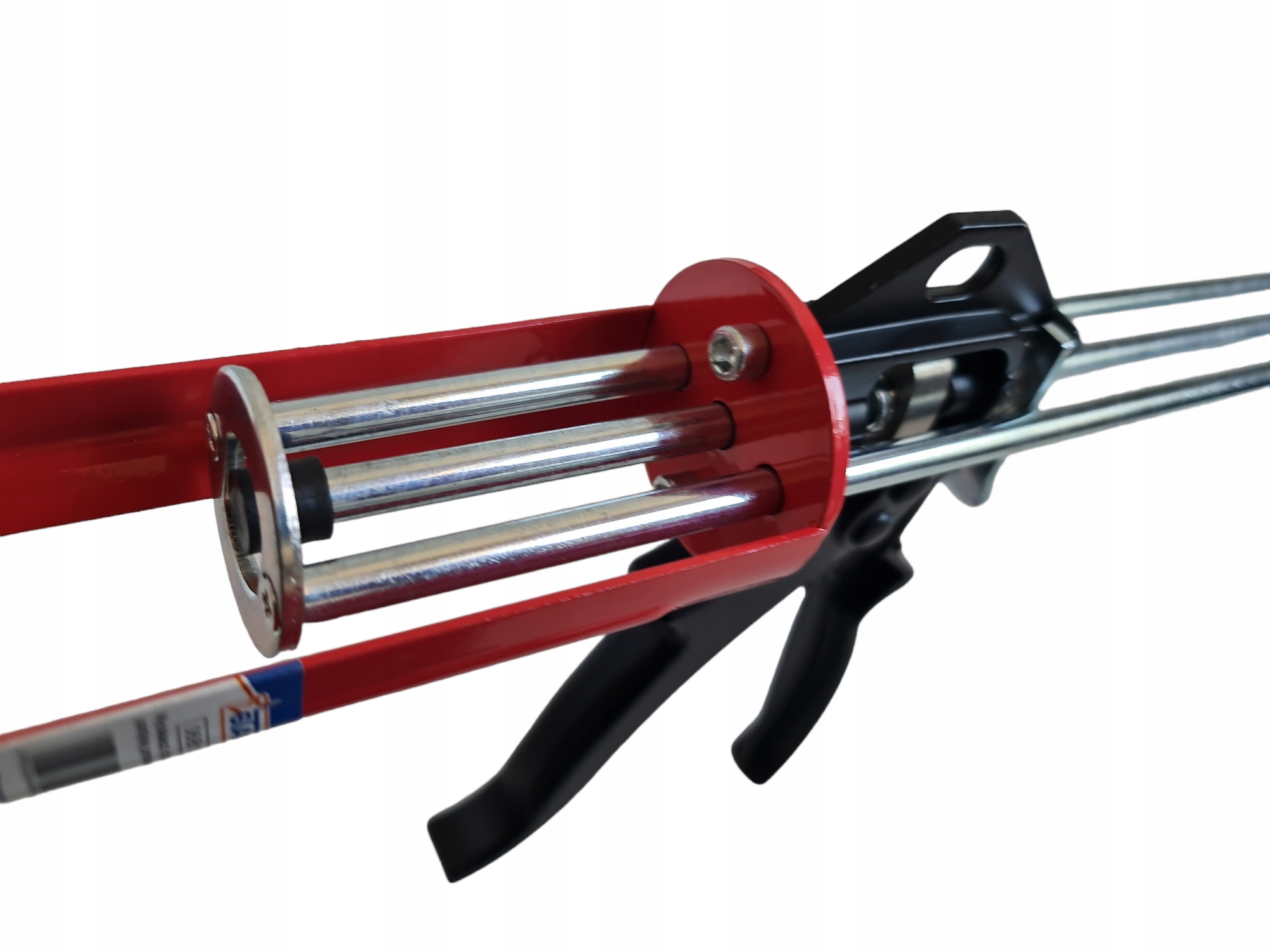 Прочная и долговечная, а также удобная, профилированная, эргономичная ручка из алюминия позволяет эффективно применять плотные материалы, напр. клеи, силиконы, герметики, смазки и др. вещества из тары по 300 мл.