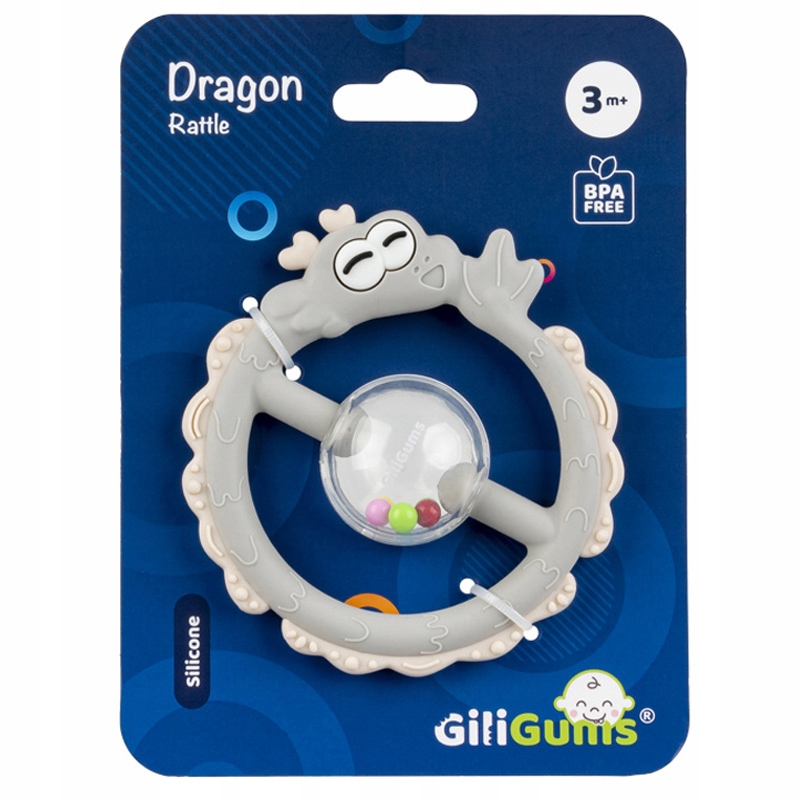 Dragon Toy для прорезывания зубов от впечатлений сочетает в себе качества прощания и гремучих! Вся поверхность обода украшена разнообразными вкладками, которые во время укуса будут мягко массировать жевательную резинку малыша. Форма игрушек, адаптированная к маленьким рукам, облегчит малышу схватить его. Внутри дракона есть шарик, заполненный разноцветными шариками, которые встряхивают при встряхивании. Продукт предназначен для детей с 3 месяца > Возраст: 3M+. Высота продукта: ок