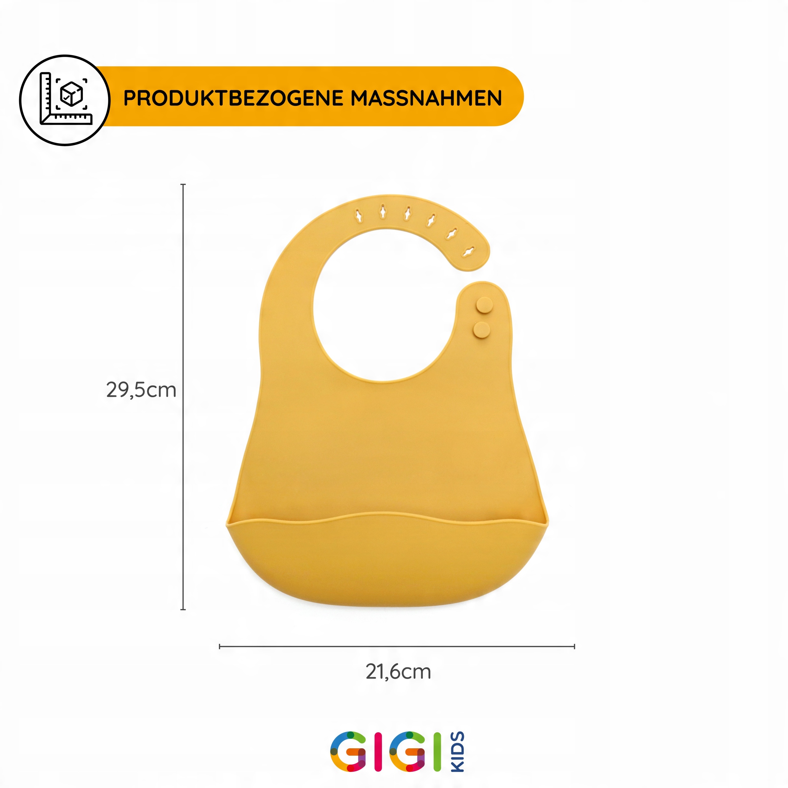 Силіконовий посуд для дітей, тарілка + столові прибори + нагрудник, BLW, жовтий