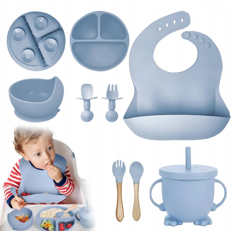 СИЛИКОНОВАЯ ПОСУДА ДЛЯ МАЛЫШЕЙ, НАБОР 8 шт., САМОСТОЯТЕЛЬНОЕ ПИТЬЕ, ПРОЧНЫЕ