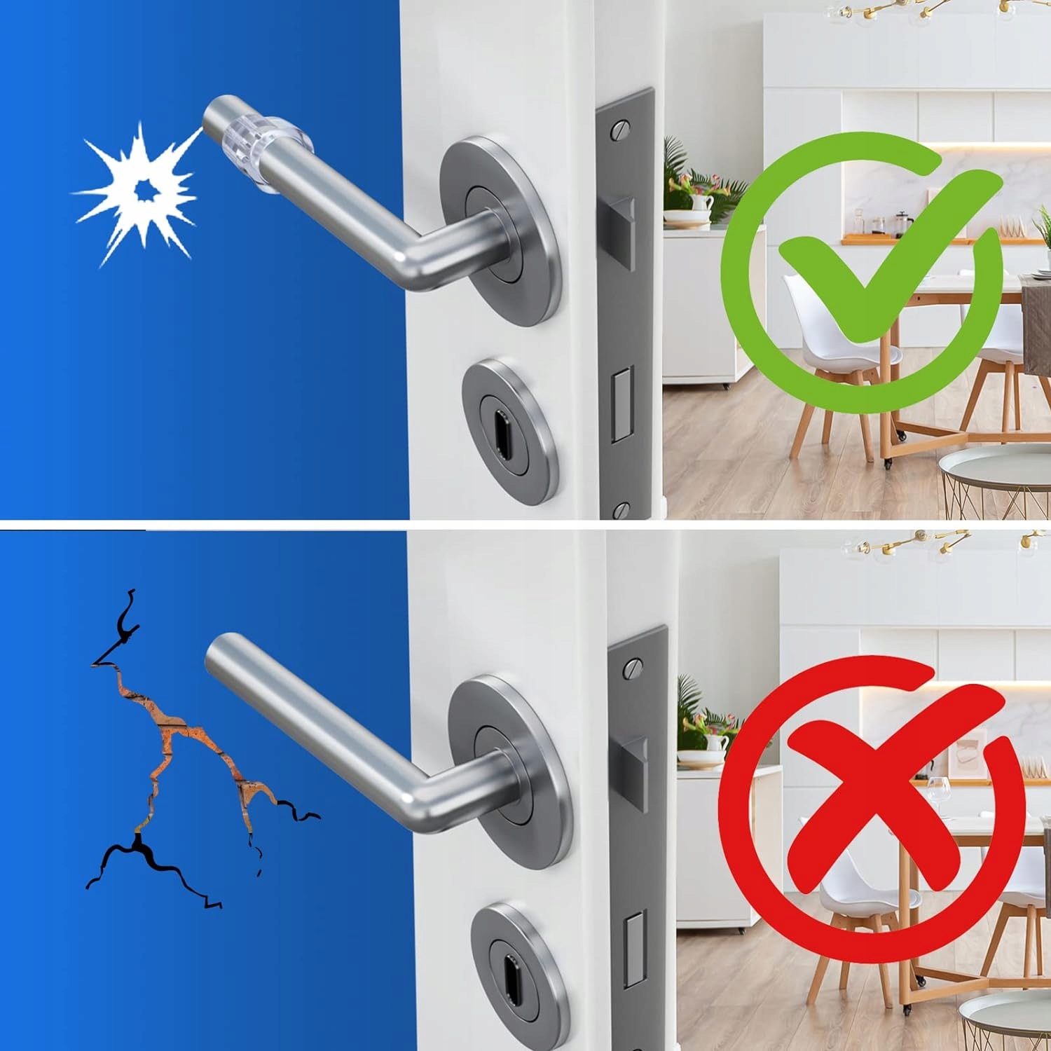 бамперы для дверной ручки изготовлены из высококачественного пластика, у них нет химического запаха и острых краев, они идеально защищают стены от неприглядных вмятин и отверстий. не заметен.
