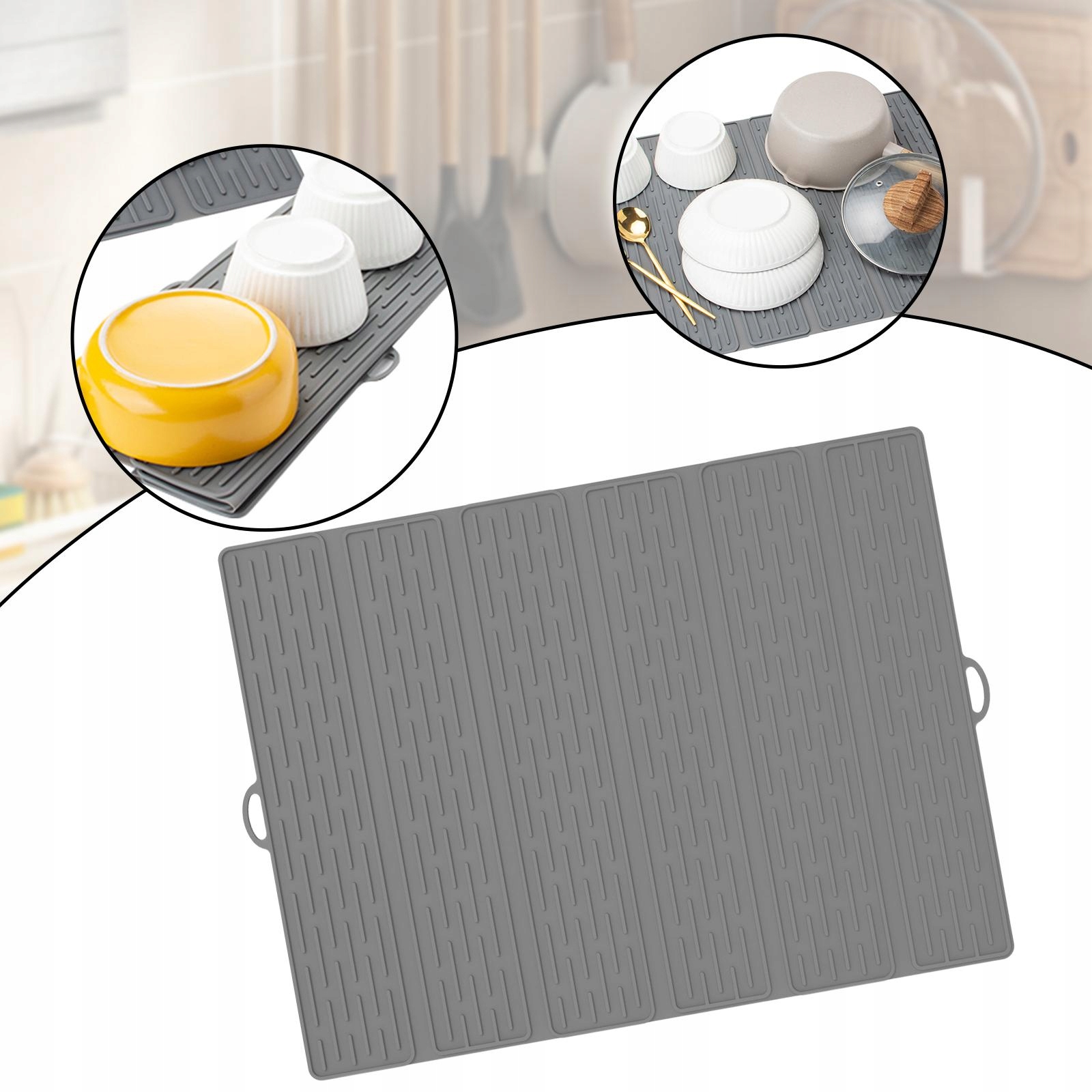 [Усиленная стабильность]: этот коврик для сушки силиконового сосуда имеет двухстороннюю противозаилительную текстуру с рисунками с обеих сторон, благодаря которой сосуды остаются безопасными на точке при высыхании