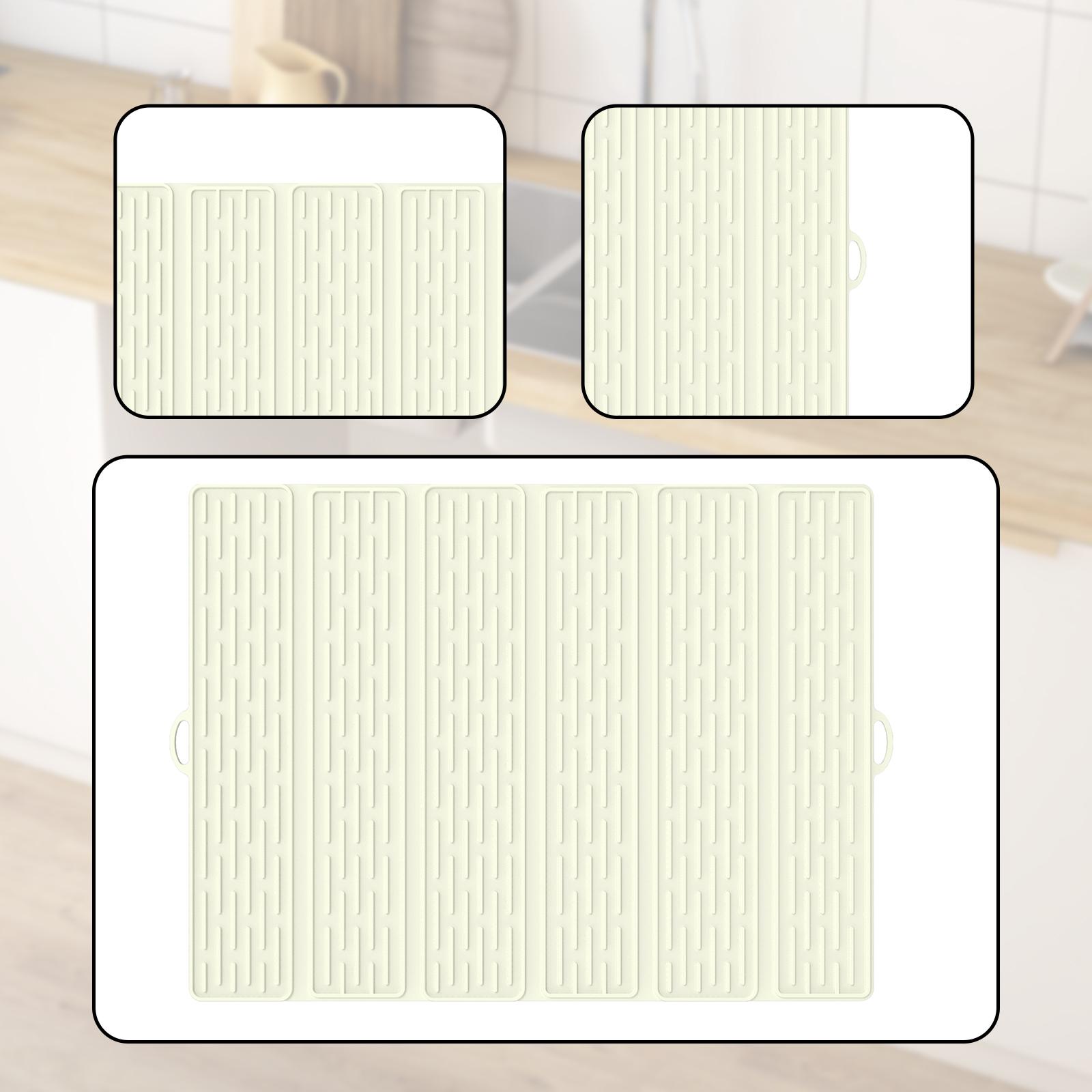[Усиленная стабильность]: этот коврик для сушки силиконового сосуда имеет двухстороннюю противозаилительную текстуру с рисунками с обеих сторон, благодаря которой сосуды остаются безопасными на точке при высыхании