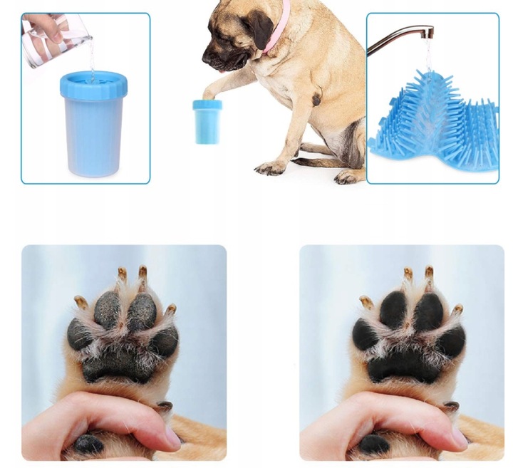 Силиконовый очиститель лап для собак - очень удобное и быстрое решение, когда нам нужно мыть лапы собаки после грязь и другая грязь снаружи. Просто налейте в чашку небольшое количество воды и положите в нее лапу питомца. Затем следует перевернуть чашку несколько раз и вытереть лапы собаки. Силиконовую чашку очень легко содержать в чистоте. Его следует слить из грязной воды, снять силиконовую вставку и промыть под проточной водой.