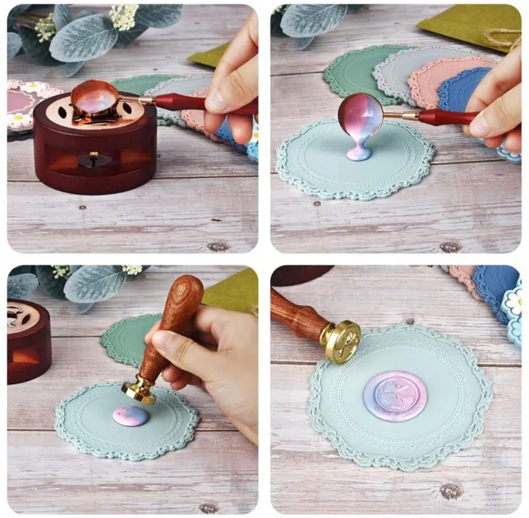 Пожалуйста, Помните, что воск не должен быть слишком горячим, потому что отпечаток не будет четким. Вылив его на поверхность, подождите 5-10 секунд и аккуратно нажмите на штамп, не поворачивая его. Дайте полностью остыть.