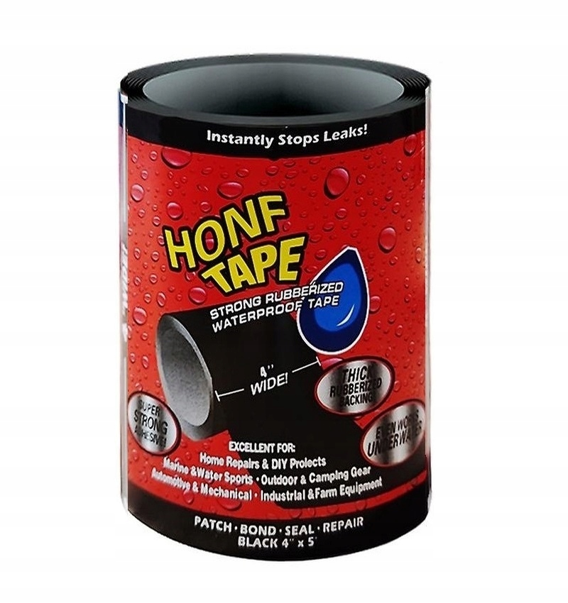 Клейкая лента — очень прочная, прорезиненная, водонепроницаемая. Лента, устойчивая к УФ-излучению, с помощью которой можно склеить, герметизировать и отремонтировать практически все, что имеет дырки или утечки!
