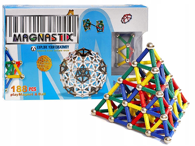 Блоки совместимы и могут комбинироваться с продуктами Geomag (магнитный мир). Магнастикс — известная качественная игрушка.