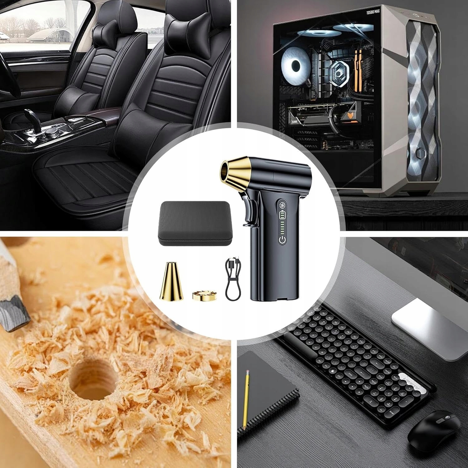 является универсальным и будет работать в автомобиле, доме и в офисе. Независимо от того, чистите ли вы примеси в машине, пыль дома или беспорядок на своем столе, является эффективным полузащитником, который быстро освежает ваше окружение. Взвешивание всего 218 г, он легкий и компактный, легко вписывается в карман или сумку. Наслаждайтесь удобством переносить его с собой, независимо от того, чистите ли вы или хотите остыть в любое время.
