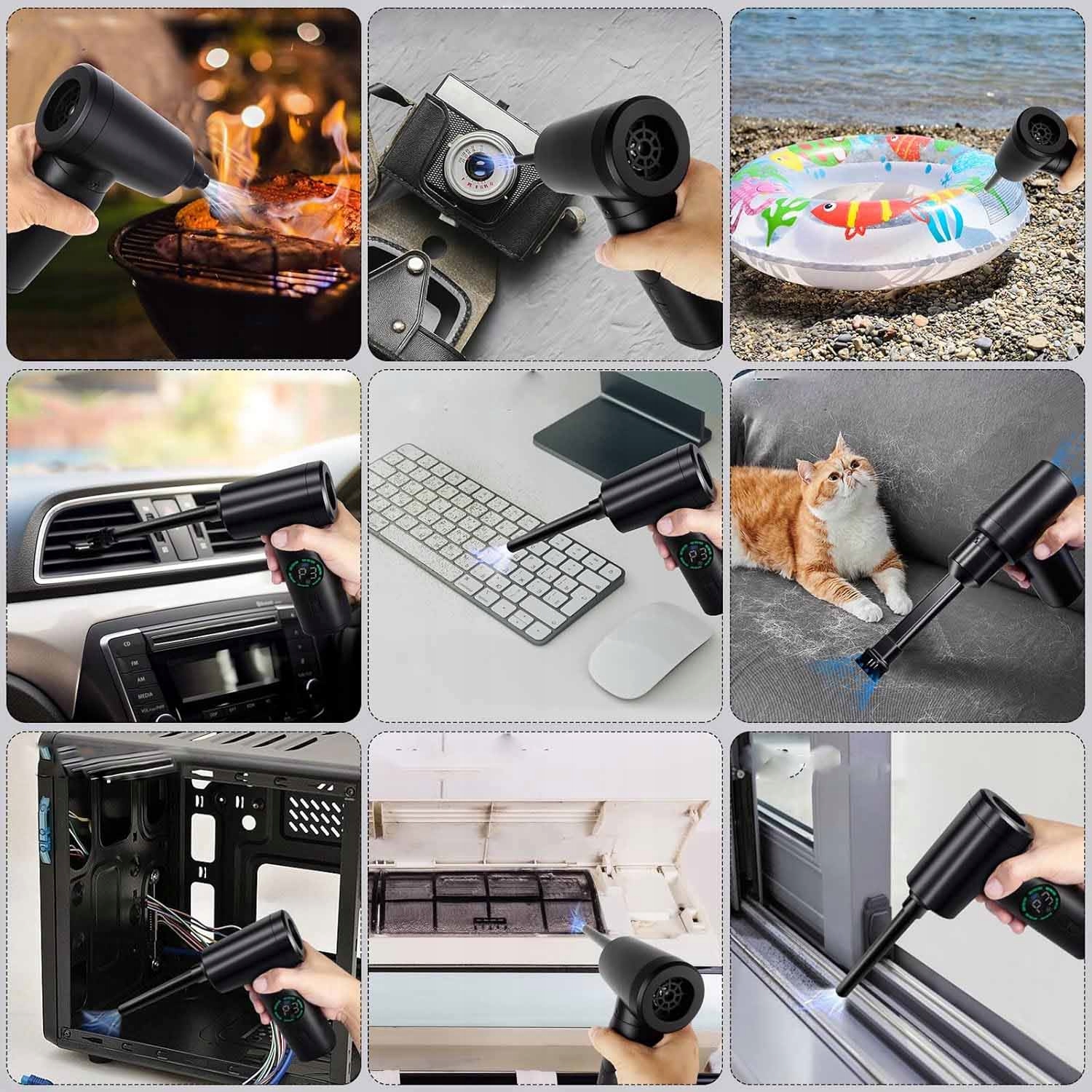 ✅ Благодаря мощной технологии двигателей, электрический пневматический пылесос имеет максимальную скорость 1100 000 об / мин для очистки любого угла. Всего есть 3 скорости ветра.