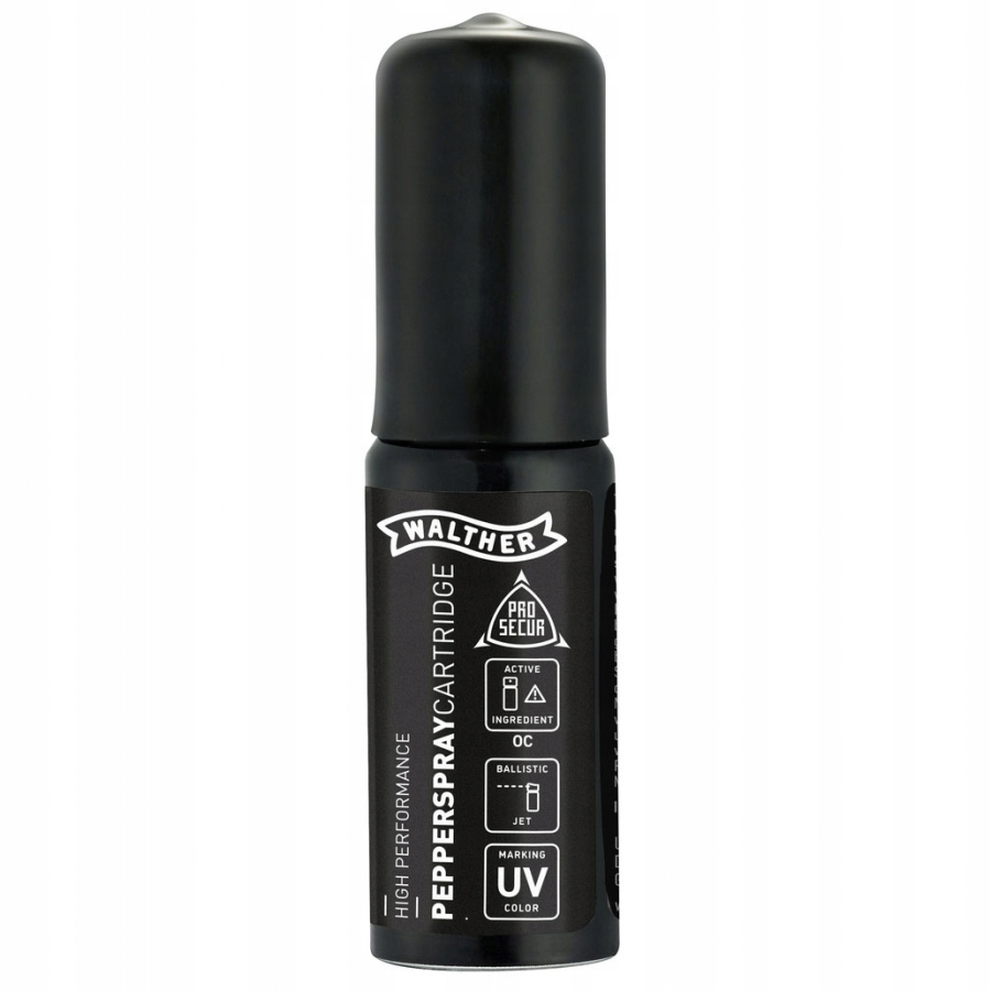 В картридже имеется защитный газ Walther PRO SECUR, содержащий биологический перцовый агент с концентрацией 10% и исключительной резкостью, до 2 млн ШУ. Концентрированная струя перцового геля имеет эффективную дальность действия до 5 метров.