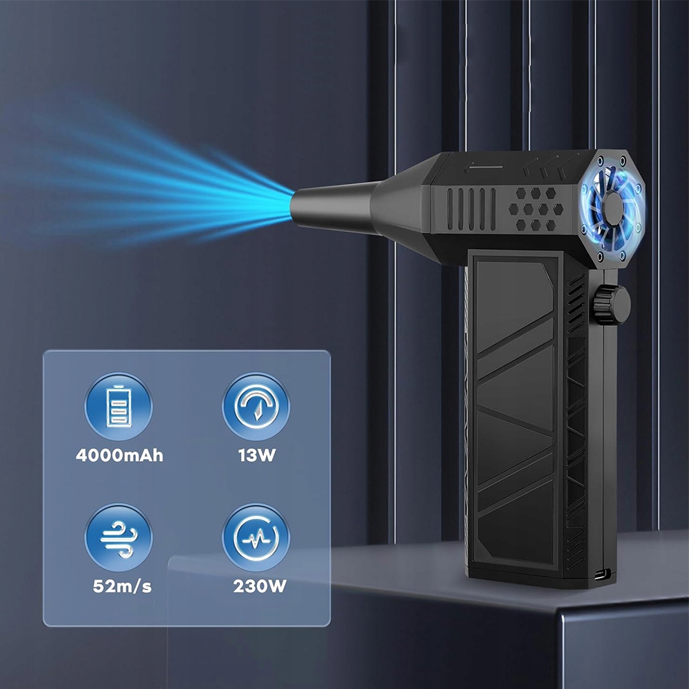 - ✔ благодаря скорости двигателя 130 000 об/мин и пиковой скоростью ветра, превышающей 52 м/с (≥51,0 м/с для супертаджфуна), эффект мощный. ✔ Просто поверните ручку на ручку, чтобы отрегулировать скорость ветра.