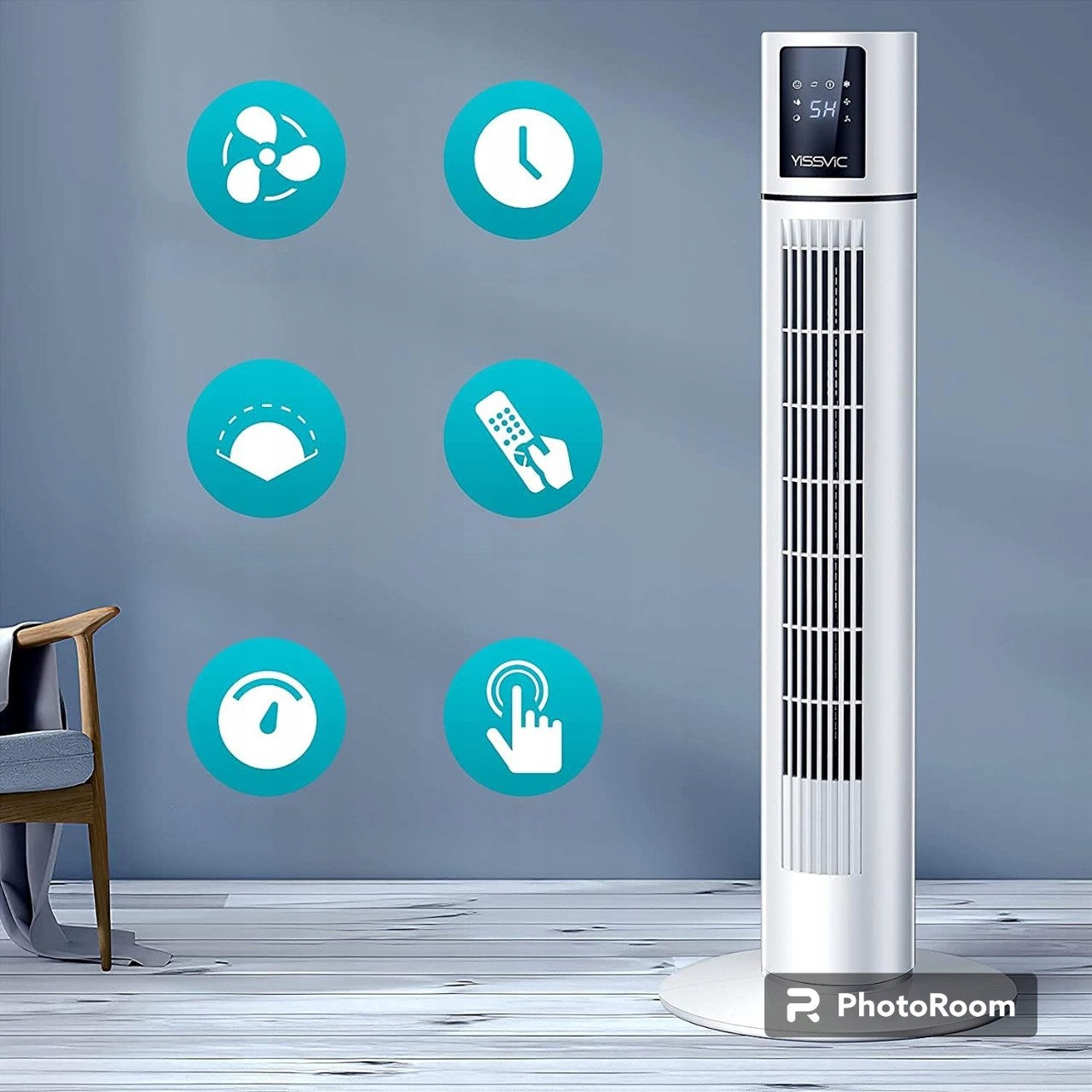 В отличие от традиционных вентиляторов, это характеризуется конструкцией столбцов. Это означает единый блок без деления в основание и вентилятор в виде ротора. Это позволяет вам достичь компактного размера, а узкая продолговатая форма корпуса идет намного лучше с различным дизайном интерьера. Благодаря колебаниям воздуха с угла поворота 90 ° вентилятор вращается в сторону, равномерно охлаждая всю комнату. Вы можете отключить функцию воздушного колебания, если хотите.